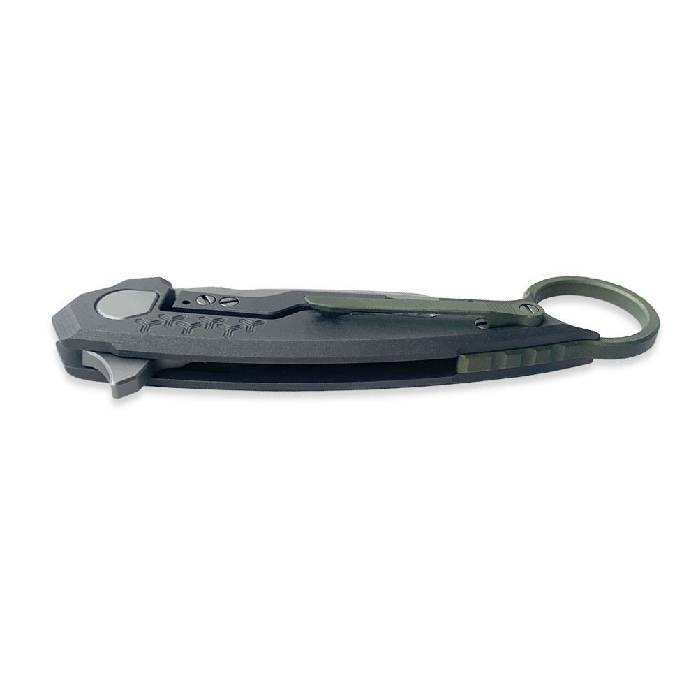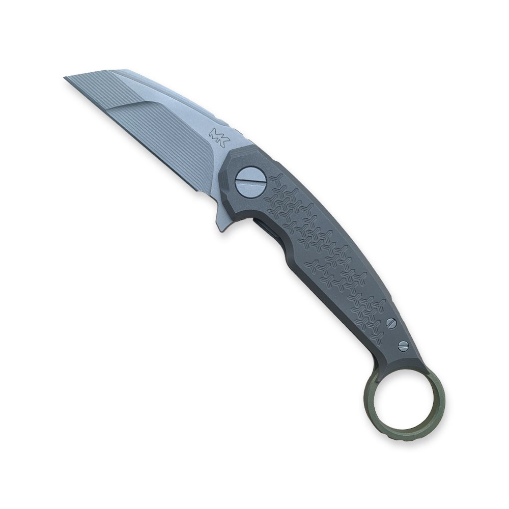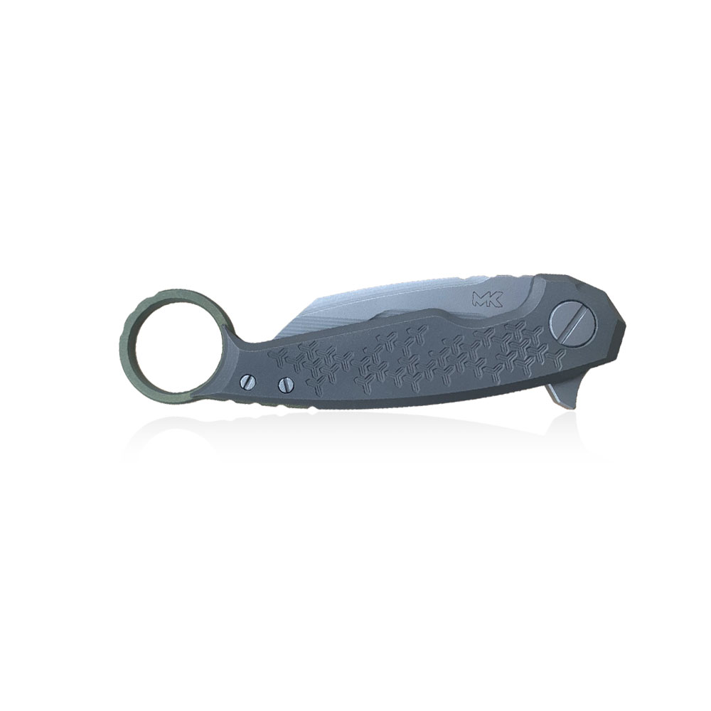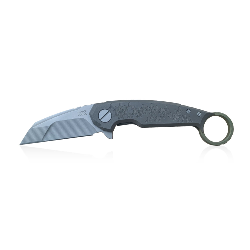 Nóż składany MK Knives & Tools Venom „Gutsy” | Elmax & Titanium to wyjątkowy model składanego noża typu który zaprojektował i wykonał Marcin Kampka. Nawiązujący swoim designem do noża z ostrzem stałym MK-05 (Claw), łączy cechy ostrza typu karambit i zalety noża składanego ukierunkowanego na codzienny użytek (EDC).
