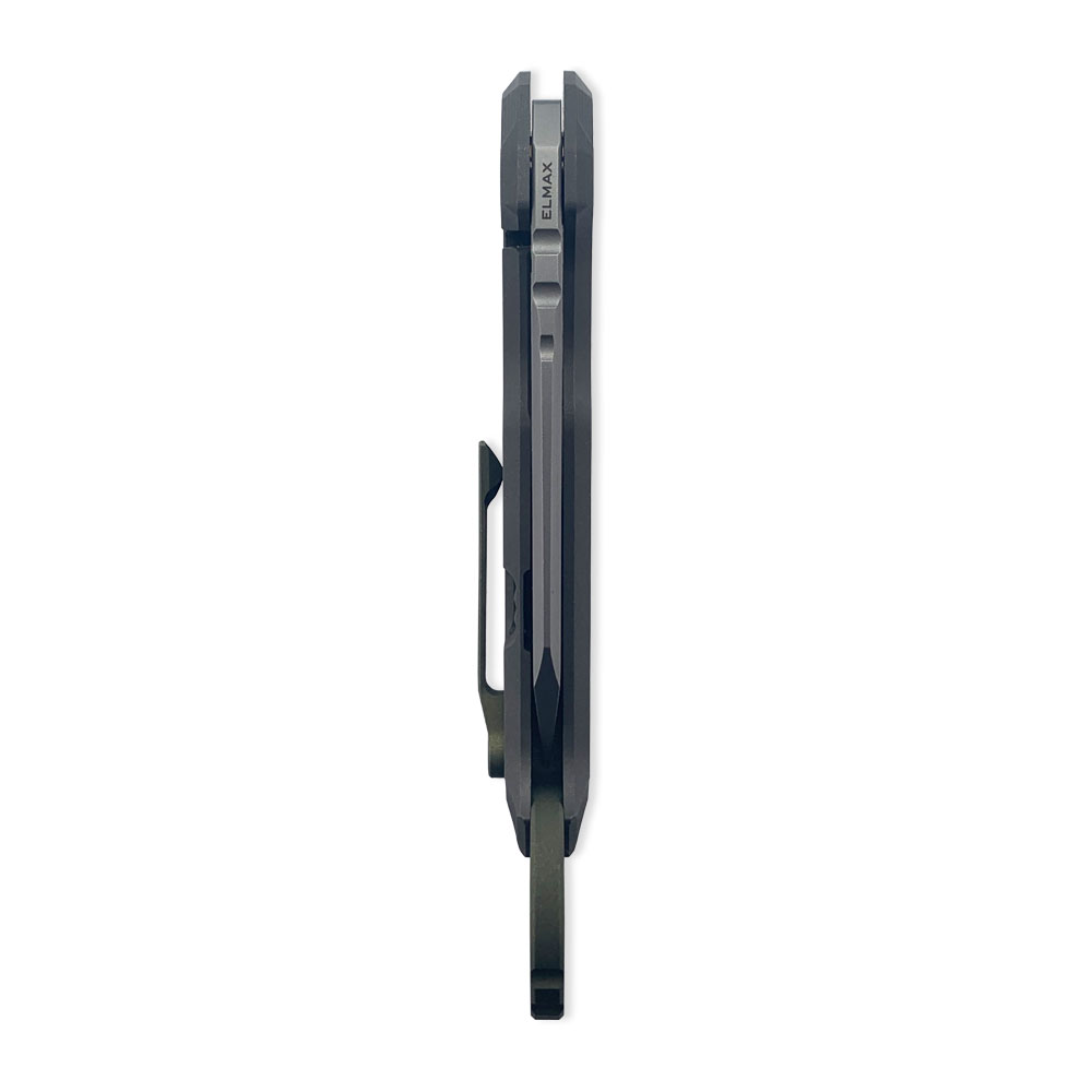 Prezentowany nóż składany MK Knives & Tools Venom „Gutsy” | Elmax & Titanium posiada ostrze z topowej stali Elmax z innowacyjnym podwójnym szlifem wklęsłym (subtelne rowki na ostrzu), rękojeść z tytanu w kolorze szarym. Design noża dopełniają tytanowy klips mocujący i backspacer w kolorze jasnej zieleni. W zestawie otrzymujemy nóż, wisiorek do kluczy MK oraz materiałowy pouch MK.