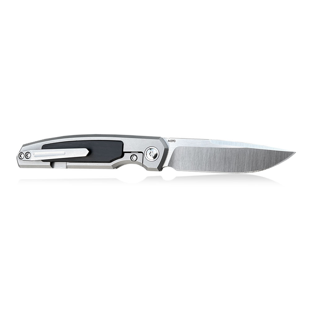 Ostrze noża wykonane zostało ze stali proszkowej M390. Jest to jedna z kilku stali dostępnych na rynku znajdujących się w absolutnym topie jakościowym materiałów służących do produkcji noży premium. Najlepsze jej właściwości uzyskuje się poprzez właściwe wykonanie procesu hartowania, w którym bezbłędnie muszą być przeprowadzone 3 etapy: utwardzanie, chłodzenie kriogeniczne (wymrażanie) i odpuszczanie. Właściwie przygotowane ostrze z M390 jest ekstremalnie wytrzymałe na przeciążenia, niezwykle długo pozostaje ostre (bardzo wolno się ściera) i ma doskonałe właściwości antykorozyjne.
