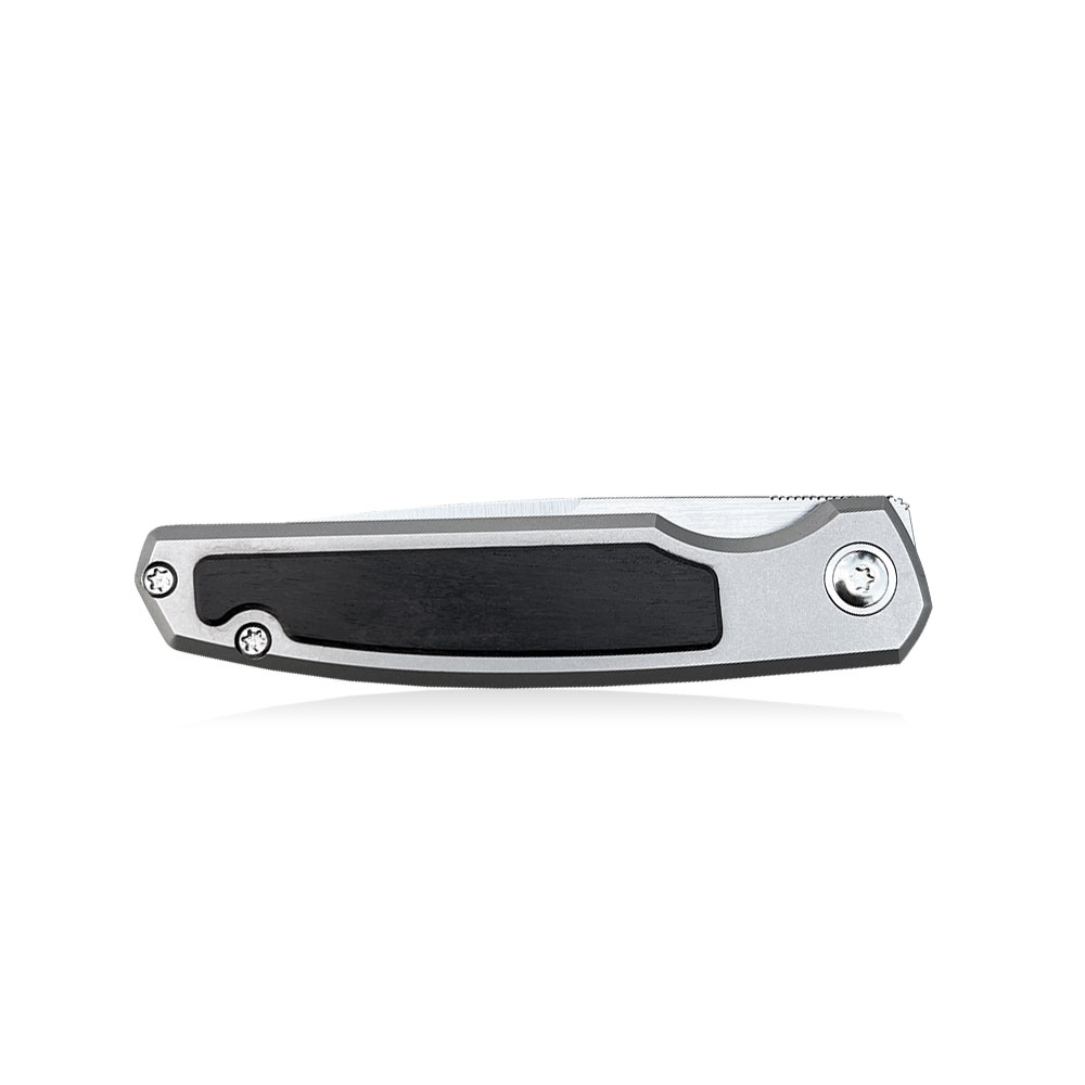 - Rękojeść: tytanowa, szkiełkowana (bead blasted) z wstawkami z drewna hebanowego (ebony); tytanowy backspacer; jednostronny tytanowy klips mocujący (Tip-Up)