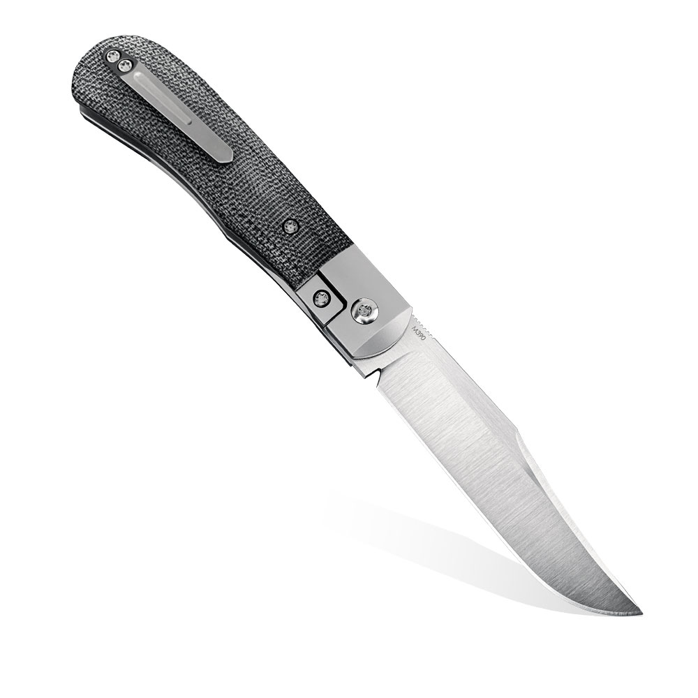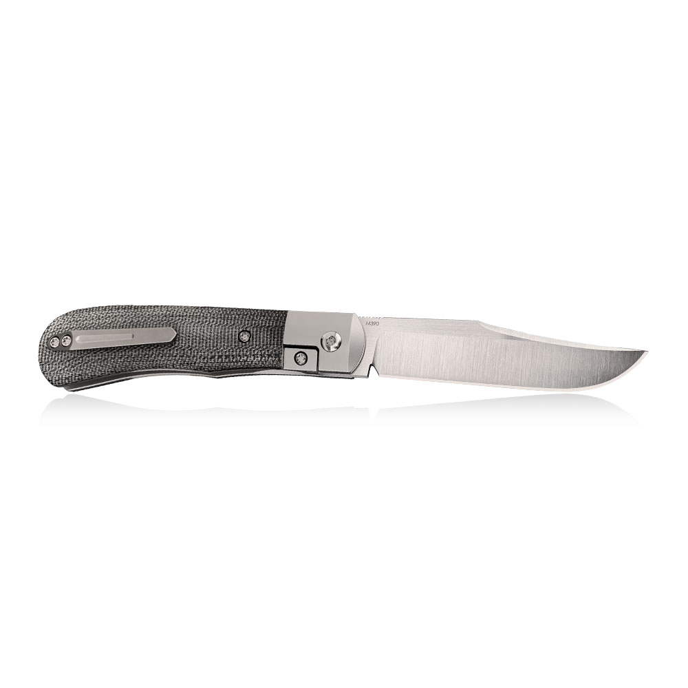 Nóż składany Pena Knives X-Series Large Texas Trapper Black Canvas Micarta posiada głownię z satynowanej stali premium M390, oraz tytanowy korpus z okładzinami rękojeści z czarnej micarty. Otwieranie ostrza następuję za sprawą górnej płetwy (front flipper), natomiast blokowanie zapewnia frame lock. Do przenoszenia noża służy tytanowy klips mocujący.