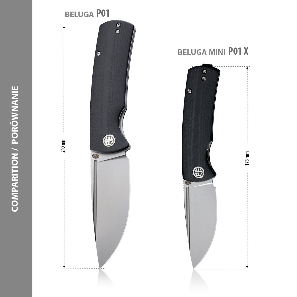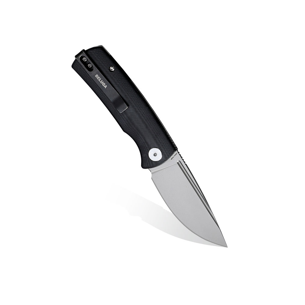 Bieluga z dość szerokim ostrzem i umiejscowionym w górnej części ostrza zbroczem a przede wszystkim otwieraniem w formie górnej płetwy (front flipper) wyróżnia się pośród innych modeli Petrified Fish. Robocze ostrze typu drop point o bardzo uniwersalnym zastosowaniu oraz stal szwedzka stal Sandvik 14C28N, będąca trzonem konstrukcji uwydatnia walory użytkowe noża. Beluga to z pewnością interesujące narzędzie na użytek codzienny.