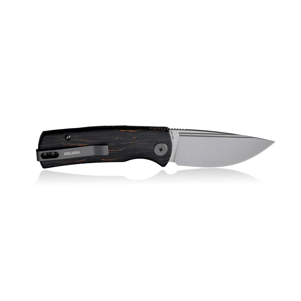 Bieluga z dość szerokim ostrzem i umiejscowionym w górnej części ostrza zbroczem a przede wszystkim otwieraniem w formie górnej płetwy (front flipper) wyróżnia się pośród innych modeli Petrified Fish. Robocze ostrze typu drop point o bardzo uniwersalnym zastosowaniu oraz stal szwedzka stal Sandvik 14C28N, będąca trzonem konstrukcji uwydatnia walory użytkowe noża. Beluga to z pewnością interesujące narzędzie na użytek codzienny.
