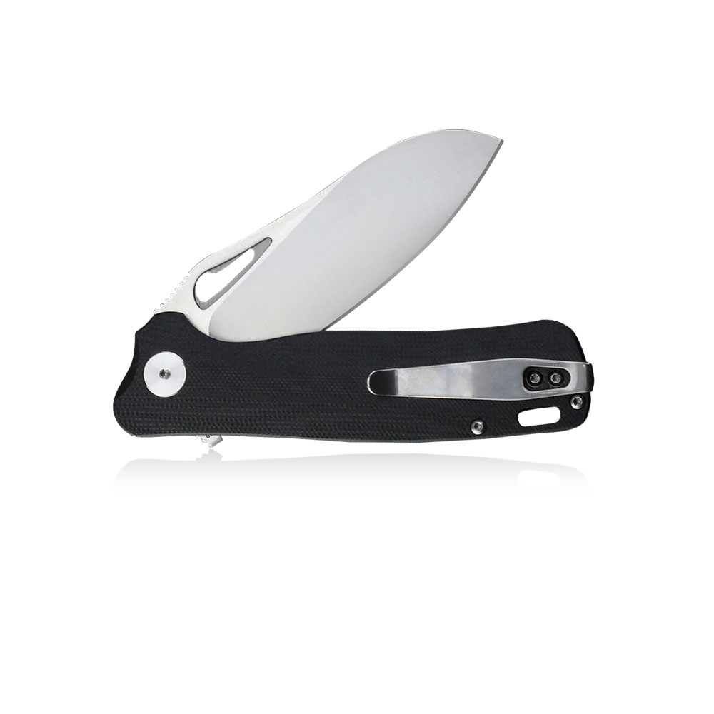 Klips ze stali nierdzewnej zapewnia stabilne przenoszenie noża w kieszeni, zamocowanie w plecaku, sakwie, nerce itd., czym przyczynia się do minimalizacji ryzyka zgubienia narzędzia. Klips zaprojektowany został w stylu deep carry, co pozwala na dyskretne przenoszenie noża w kieszeni. W rękojeści zaprojektowano otwór na paracord, linkę itp. rozwiązania zapobiegające przed zgubieniem lub upuszczeniem zabezpieczonego nimi narzędzia. Do otworu można również doczepić ozdobny koralik itd. (koralik nie znajduje się w zestawie).