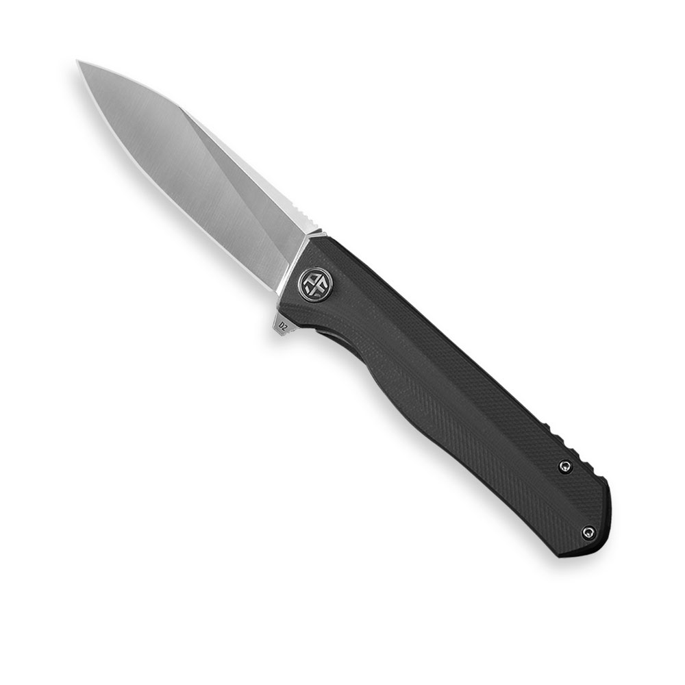 Nóż składany Petrified Fish Forward PF-818 DS Black posiada wydajne ostrze typu drop point ze znanej z efektywności cięcia i nieuciążliwej w ostrzeniu i pielęgnacji stali D2. Rękojeść noża wykonana została z czarnego kompozytu G10. Otwieranie noża następuję za sprawą wystającej płetwy (flipper) a ostrze blokuje blokada typu liner lock.