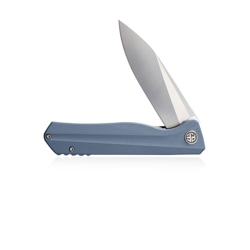 Nóż składany Petrified Fish Forward PF-818 Gray posiada wydajne ostrze typu drop point ze znanej z efektywności cięcia i nieuciążliwej w ostrzeniu i pielęgnacji stali D2. Rękojeść noża wykonana została z szarego kompozytu G10. Otwieranie noża następuję za sprawą wystającej płetwy (flipper) a ostrze blokuje blokada typu liner lock.
