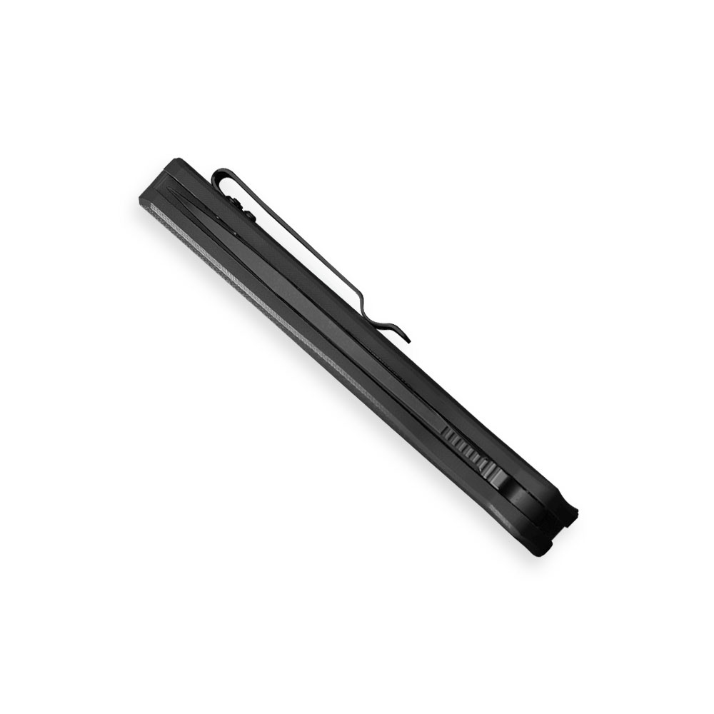 Okładziny rękojeści z wytrzymałego kompozytu G10 o antypoślizgowej i chropowatej strukturze zapewniają stabilny chwyt oraz włókna węglowego. Materiał okładek jest odporny na zawilgocenie, zmiany temperatury, większość rozpuszczalników i kwasów i co najważniejsze charakteryzuje się wysoką odpornością na uszkodzenia mechaniczne. Rękojeść o ergonomicznym kształcie bardzo dobrze dopasowuje się do ręki i zapewnia stabilny i mocny chwyt. Okładki zostały wzmocnione karbowanym backspacerem w kolorze całej rękojeści.