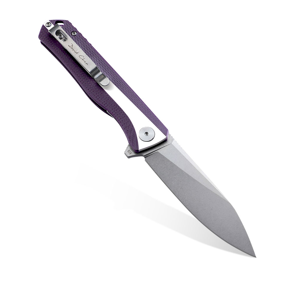 Nóż składany Petrified Fish Forward PF818 WPW Stonewashed D2 Purple with White G10 to nóż stworzony do użytku codziennego EDC (EveryDay Carry).