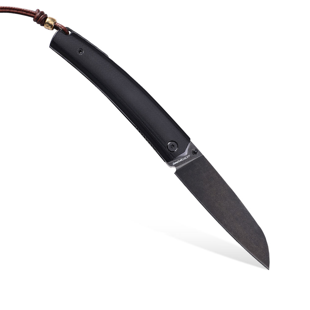 - Stal: Sandvik 12C27N (59-60 HRC), black stonewash