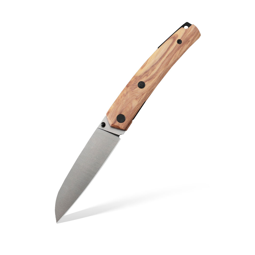 - Rękojeść: Okładki z drewna oliwnego (olive wood), stalowe linersy i backspacer