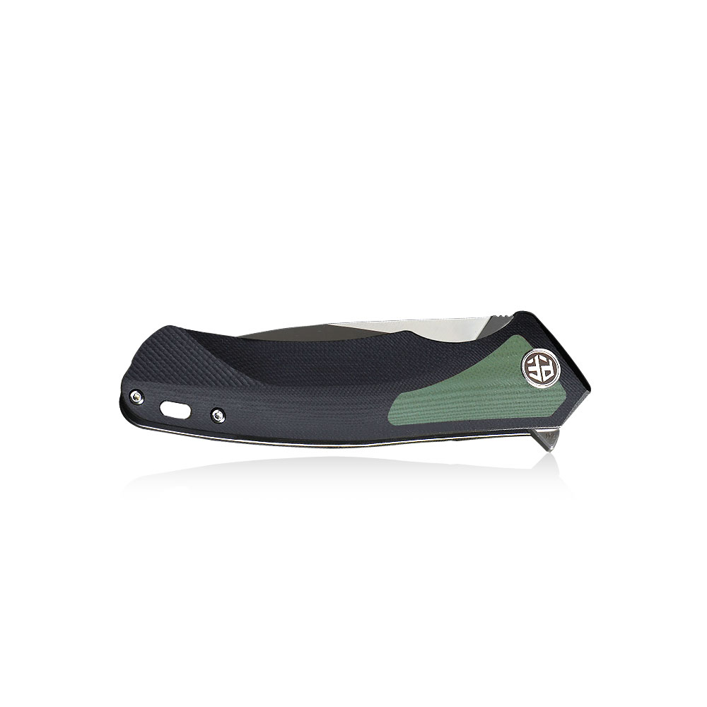 - RĘKOJEŚĆ: Czarny kompozyt G10 z zielonymi wstawkami