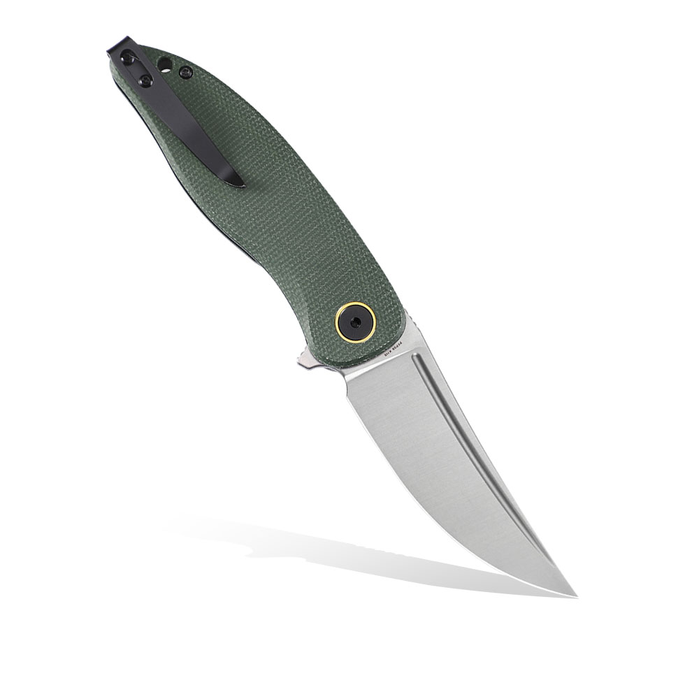 Satynowane, wyprowadzone szlifem płaskim i zakończone w stylu clip point, ostrze czyni nóż bardzo uniwersalnym i funkcjonalnym. Głownia ze stali narzędziowej K110 wykazuje doskonałe właściwości tnące i posiada wysoką odporność na ścieranie i uszkodzenia mechaniczne.