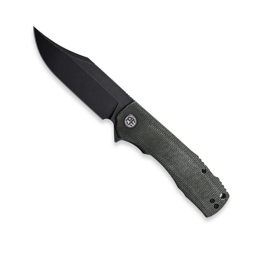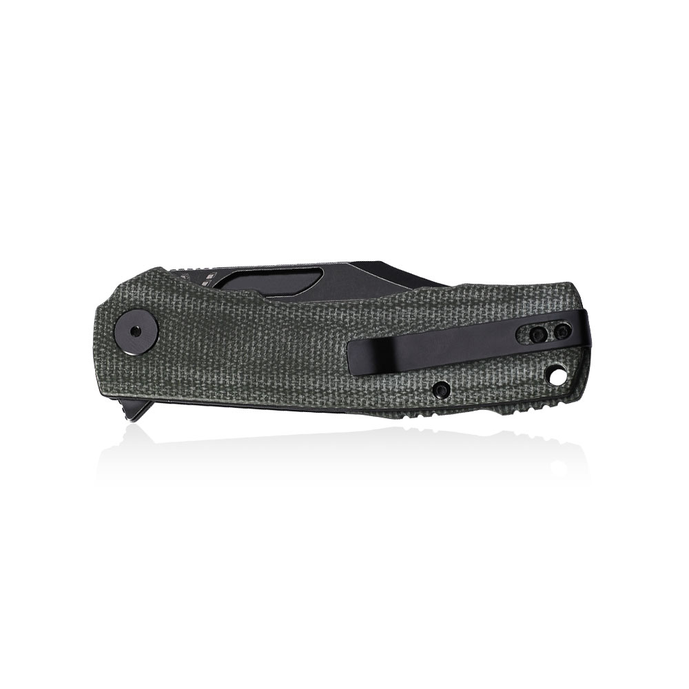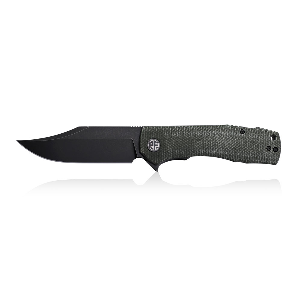 Nóż składany Petrified Fish Victor PF-P03 GRMW Green Micarta posiada wydajne ostrze typu clip point ze stali K110 (czarne wykończenie / blask stonewash). Rękojeść noża wykonana została z zielonej micarty. Otwieranie noża następuję za sprawą płetwy (flipper) a ostrze blokuje blokada typu liner lock.