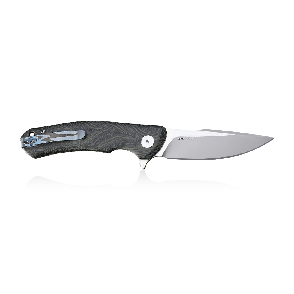 Fantastyczny nóż, gorąco polecam. Uważam, że jakość wykończenia, spasowanie i działanie mechanizmu znacznie wykracza poza półkę cenową, na której znajduje się ten kozik. Szczególnie rękojeść z „damastowego” G-10 jest znakomita – satynowa w dotyku i bardzo wygodna, a poza tym pięknie wygląda. Głownia znakomicie i symetrycznie wyprofilowana, delikatne satynowanie dodaje jej dużo uroku. Generalnie jest to znakomity wybór, oczywiście jeśli ktoś szuka większego foldera i nie potrzebuje magicznych stali typu MagnaCut czy Maxamet. Dla moich potrzeb K110 w zupełności wystarczy.