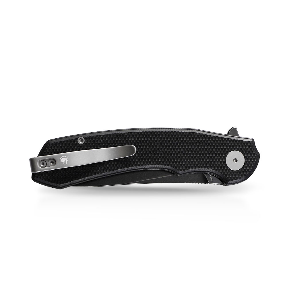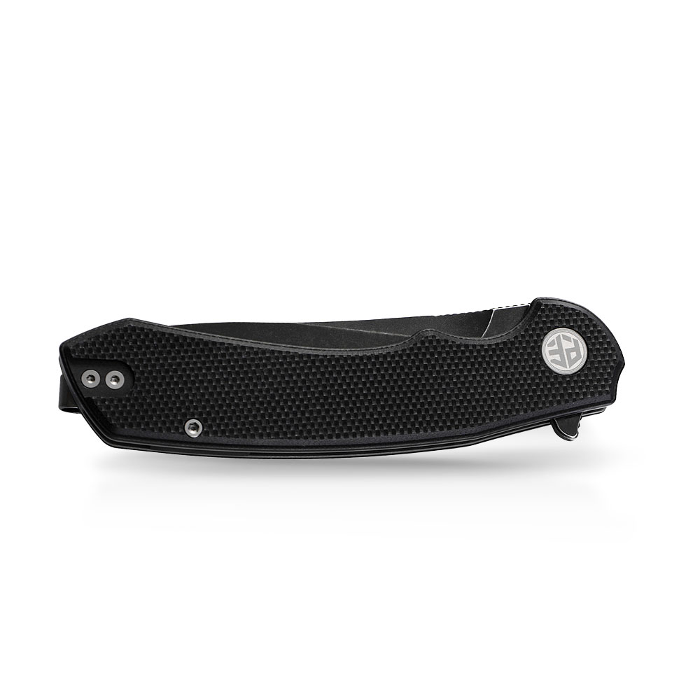 - Rękojeść: Czarny kompozyt G10, stalowe linersy, klips stalowy (Tip-Up, Deep Carry, przekładalny na drugą stronę)