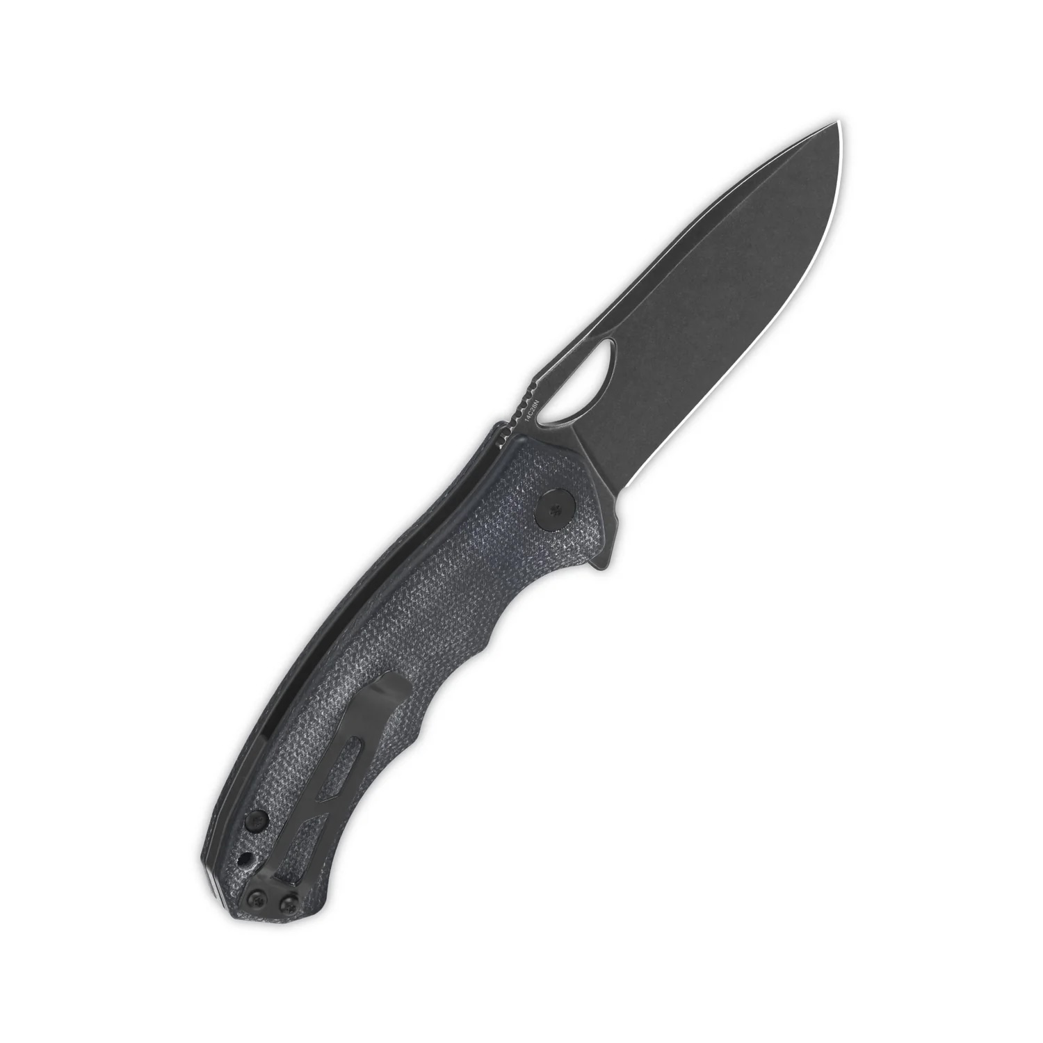 - Rękojeść: stalowe linersy, okładki z micarty (black micarta | czarna micarta), stalowy klips do przenoszenia (Tip-Up)