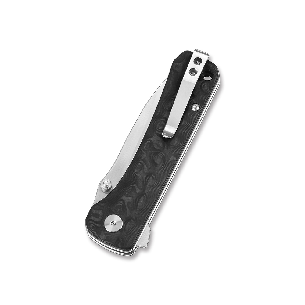 Rękojeść noża wykonana została z lekkiego i wytrzymałego włókna węglowego. Jest to element potęgujący efekt wizualny, a także dzięki właściwościom antypoślizgowym gwarantujący stabilność chwytu. Nóż wyposażono w stalowy klips, umożliwiający pewne mocowanie podczas przenoszenia w kieszeni, w plecaku, organizerze, nerce itd. Zaprojektowany nad klipsem otwór pozwala na przewleczenie dodatkowej linki, paracordu itp. Zarówno klips jak i otwór to elementy służące jako zabezpieczenie przed ewentualnym zgubieniem noża.NAZWA: Hawk