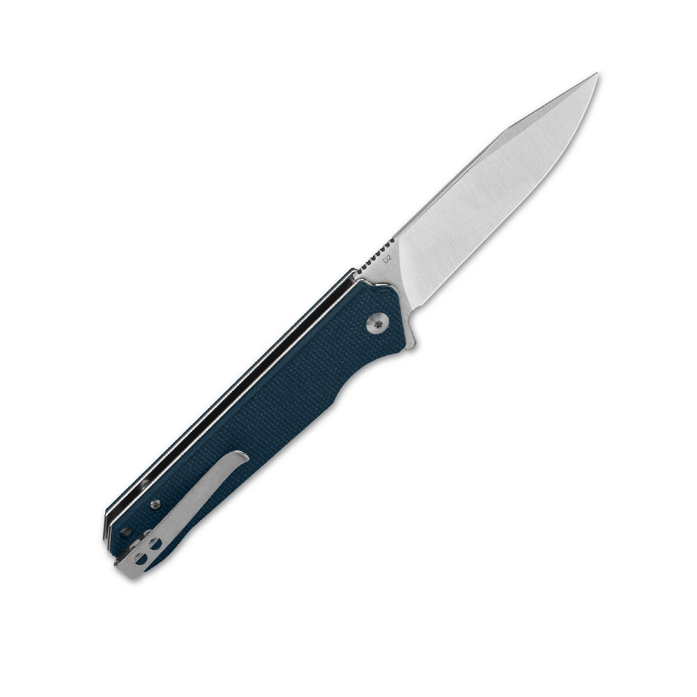 Nóż składany QSP Knife Mamba V2 QS111-H1 Blue Micarta posiada okładziny rękojeści wykonane z niebieskiej micarty. Satynowane ostrze noża otwierane jest za sprawą wystającej z głowni płetwy (flipper), a przed złożeniem w trakcie pracy zabezpiecza go blokada liner lock.