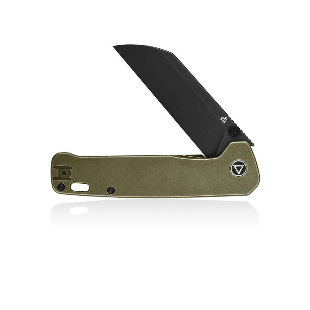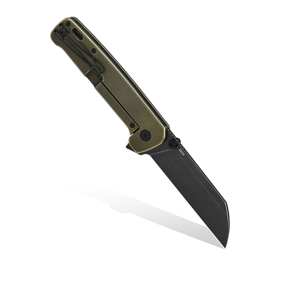 Nóż składany QSP Knife Penguin Plus QS130XL-B Black Stonewashed 20CV Bronze Ti to nóż do użytku codziennego (EDC). Jest to największy folder w rodzinie Penguin. Posiada głownię sheepsfoot ze szlifem płaskim wykonaną ze stali premium 20CV i wykończoną w black stonewash, otwieraną kołkami lub flipperem, tytanową rękojeść, blokadę frame lock ze stalową wkładką i obustronny klips (wire clip).