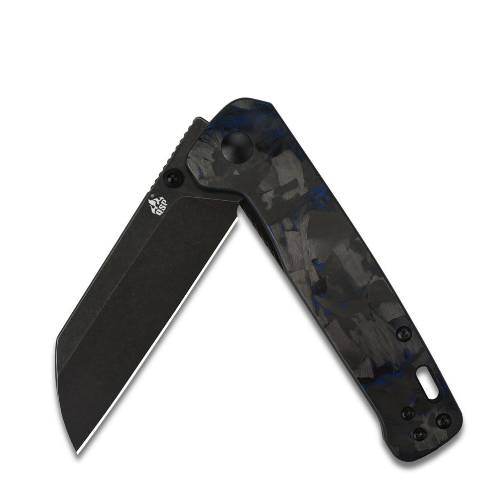 Nóż składany QSP Knife Penguin QS130-T Carbon z Niebieskiem. Ostrze czarne – oksydowane.