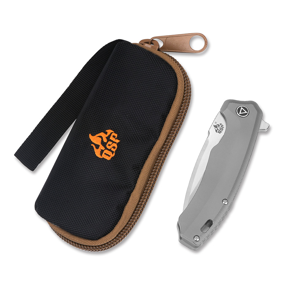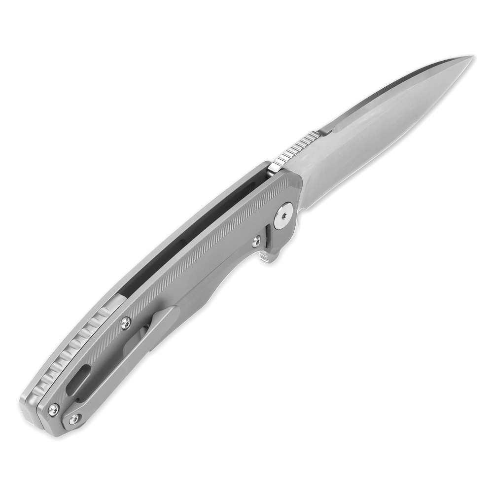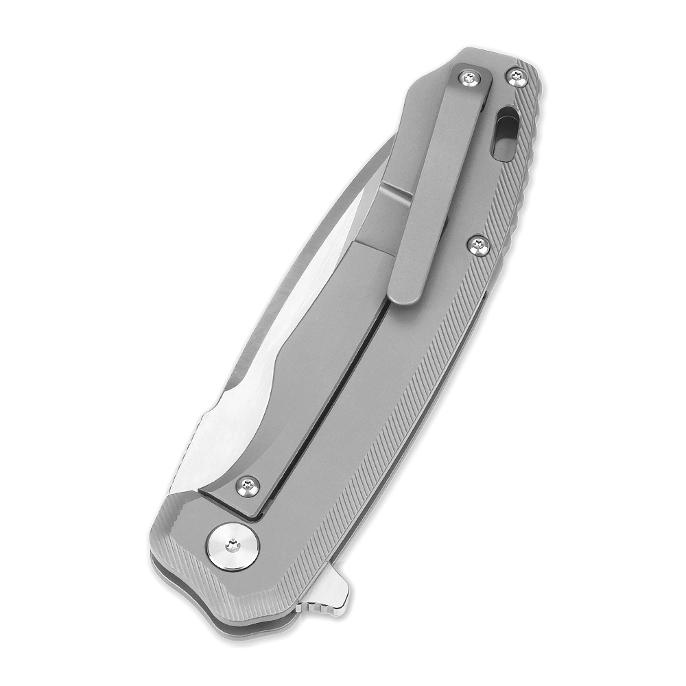 Rękojeść w całości wykonana została z lekkiego i ekstremalnie wytrzymałego tytanu. Jest to twardy, odporny na uderzenia i uszkodzenia mechaniczne metal, stosowany w nożach z najwyższej półki jakościowej. Nóż wyposażono w tytanowy klips, umożliwiający stabilne przenoszenie w kieszeni, zamocowanie w plecaku, organizerze, nerce itd. Zaprojektowany nad klipsem otwór pozwala na przewleczenie dodatkowej linki, paracordu itp. Zarówno klips jak i otwór to elementy służące jako zabezpieczenie przed ewentualnym zgubieniem noża.