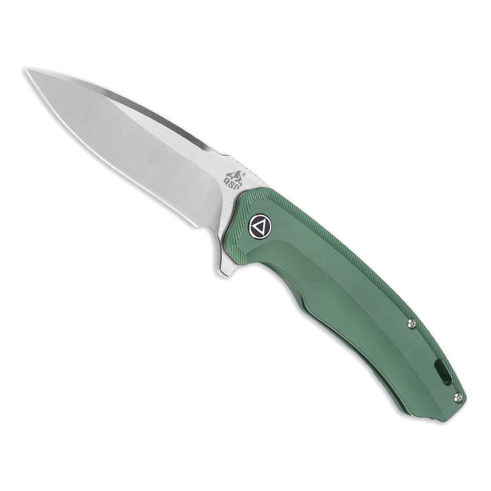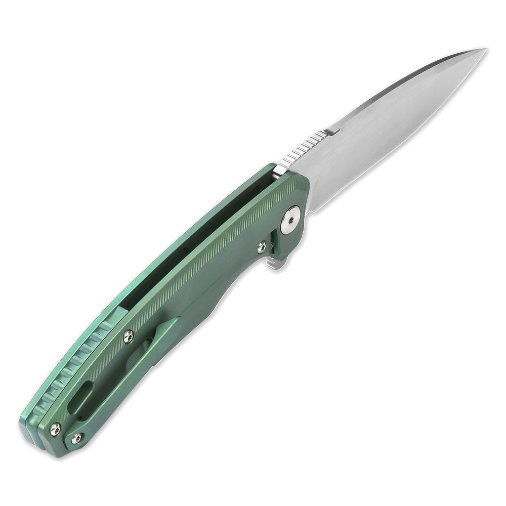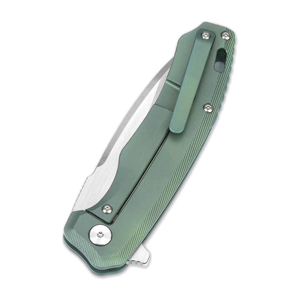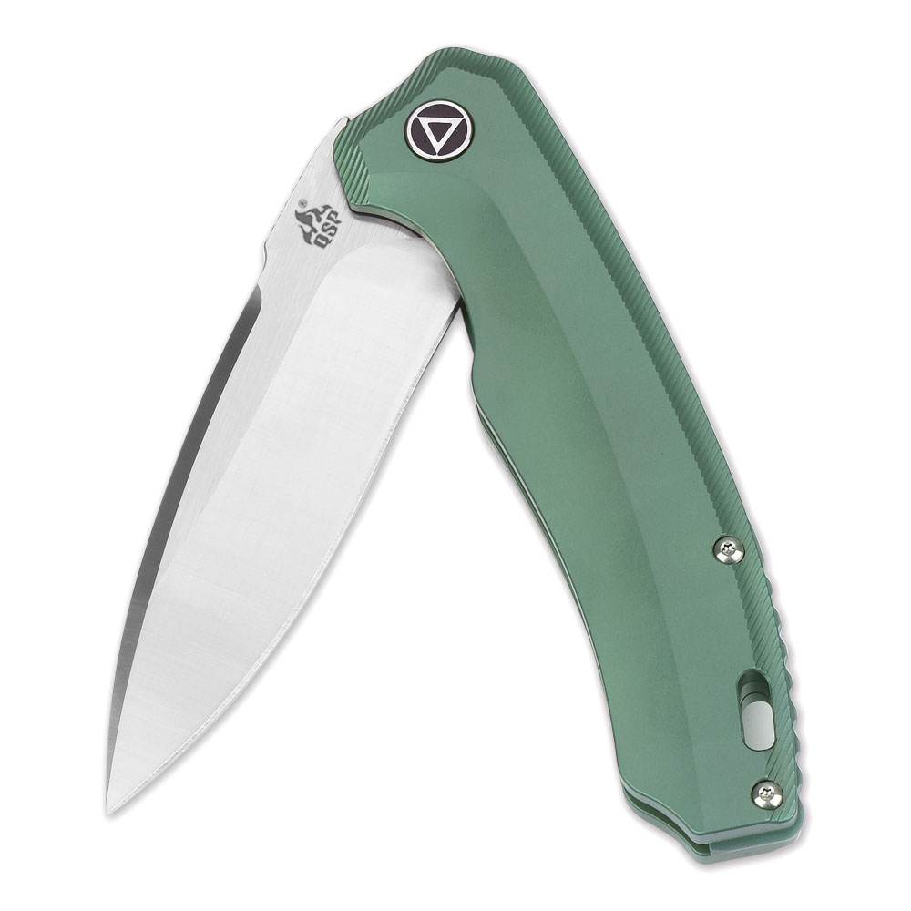 Zaprezentowany model Nóż składany QSP Knife Woodpecker QS116-B II posiada rękojeść w kolorze zielonego tytanu. Wersję z rękojeścią w kolorze naturalnego tytanu można nabyć TUTAJ.