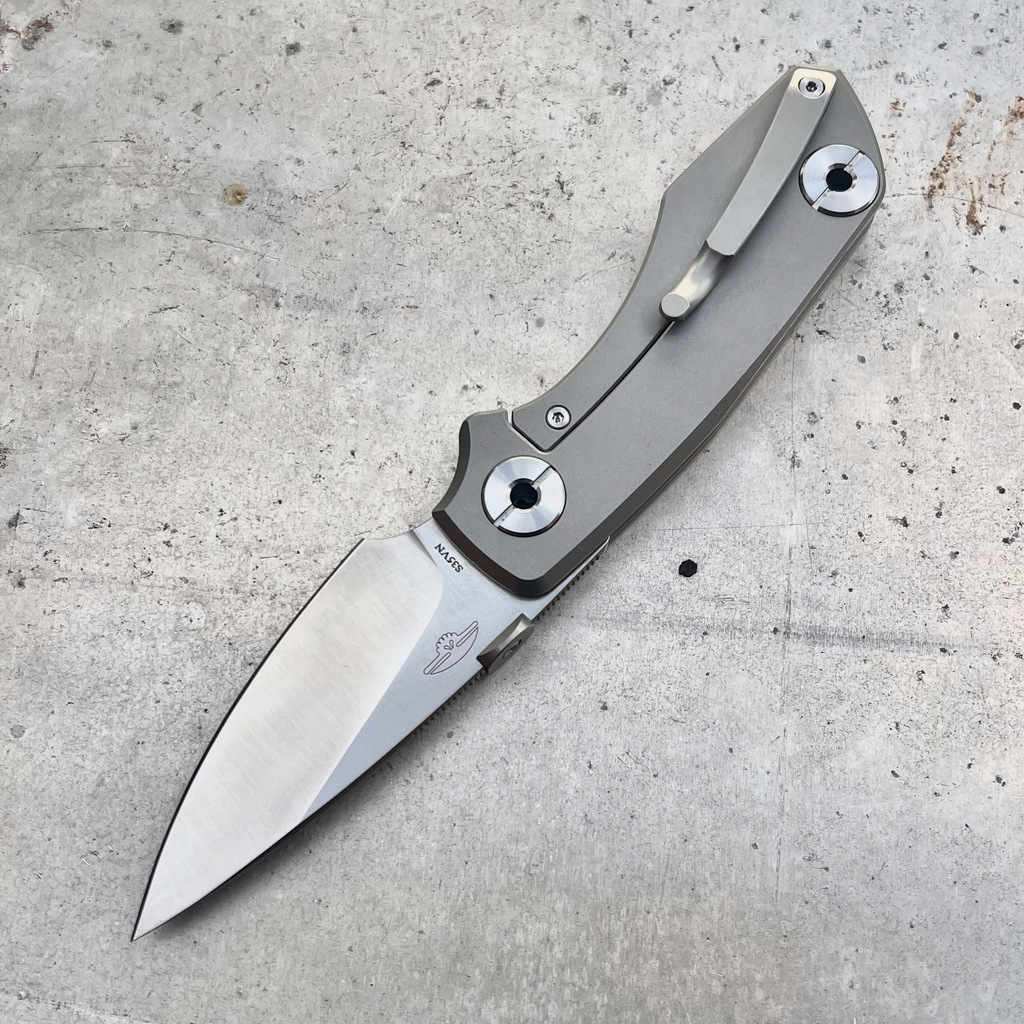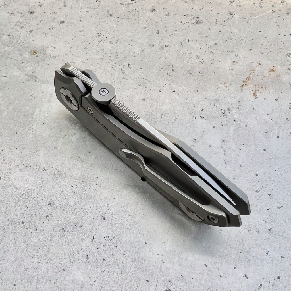 - Rękojeść: tytanowa (Grade 5, TC4), tytanowy klips mocujący (Tip-Up)