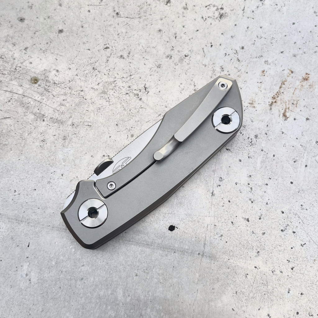 Tytanowy klips zapewnia stabilne przenoszenie noża w kieszeni, zamocowanie w plecaku, sakwie, nerce itd., czym przyczynia się do minimalizacji ryzyka zgubienia narzędzia. Klips umożliwia schowanie przyczepionego noża głęboko w kieszeni. Jest to klips w wykonaniu Tip-Up, zlokalizowany na zakończeniu rękojeści noża umożliwiający przenoszenie zamkniętego ostrza wierzchołkiem do góry.