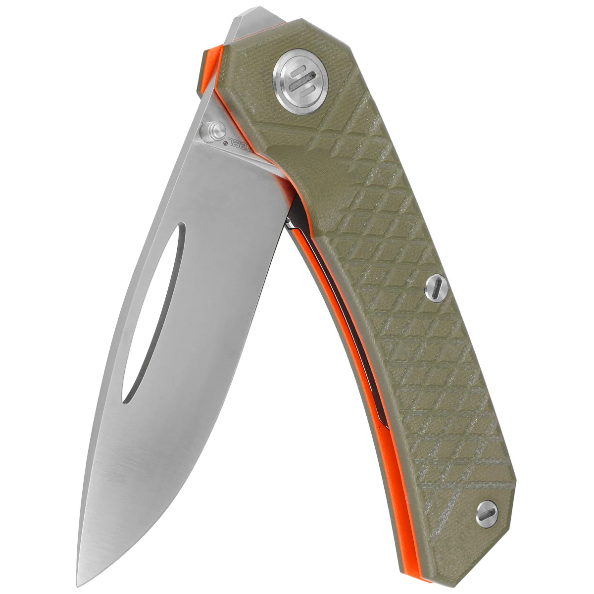 Głownia noża jest typu Drop Point, a jej wykończenie to elegancki Satin. Zakrzywiona krawędź tnąca prowadzi do ostrym jak igła czubka noża. Grubość klingi gwarantuje wytrzymałość, a wysoki, płaski szlif zapewnia doskonałą geometrię krawędzi tnącej i wydajność cięcia. Łożyska kulkowe zapewniają płynne otwieranie ostrza, które można otworzyć za pomocą obustronnego kołka w klindze (dual thumb stud), otworu w klindze lub płetwy front flippera. Dzięki temu nożem mogą korzystać zarówno osoby prawo- jak i leworęczne. Całość blokuje sprawdzona blokada Liner Lock.