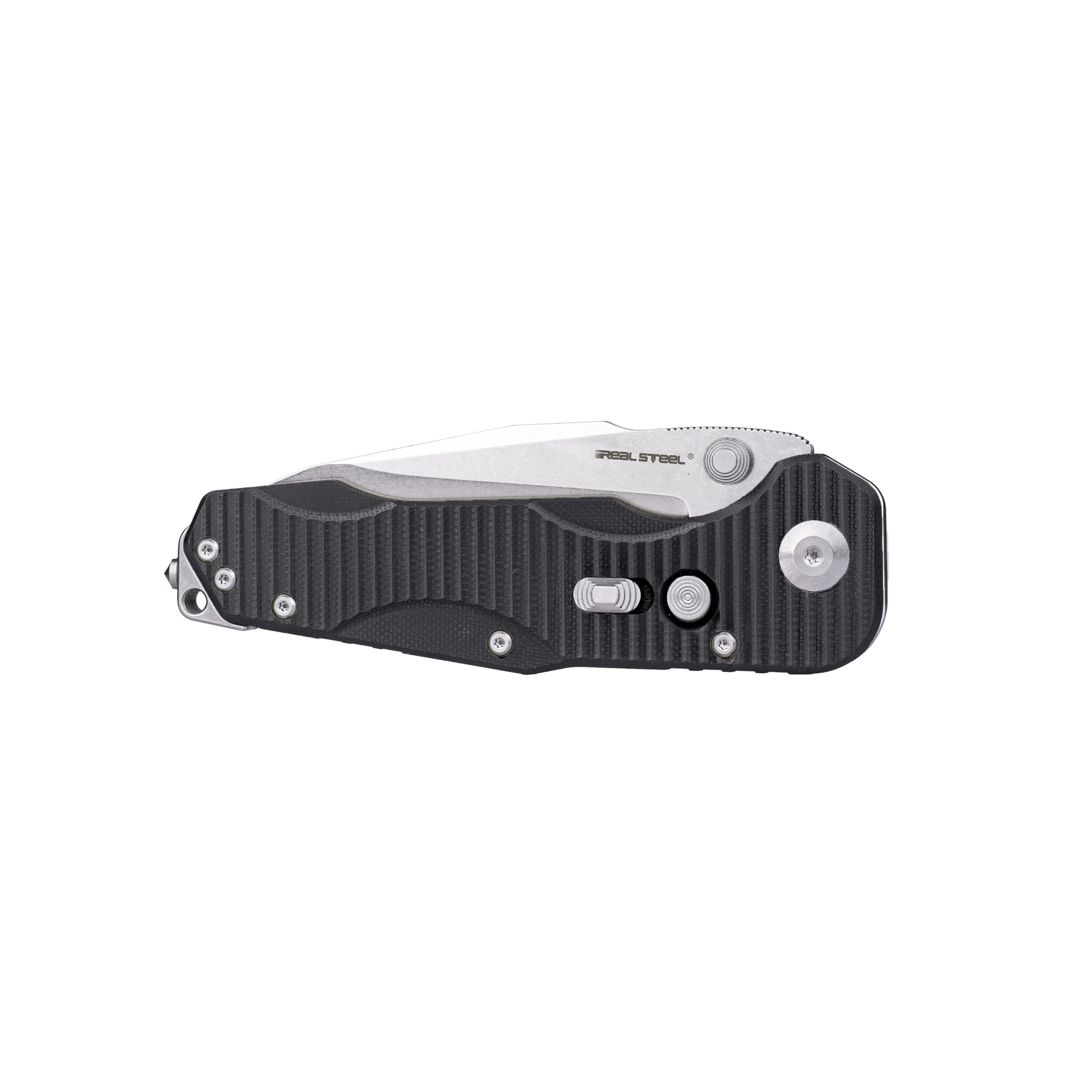 Nóż Składany Real Steel Evolution Ironclad 7911SB Drop Point Thumb Stud Frame Lock Stonewashed D2 Steel & Black G10