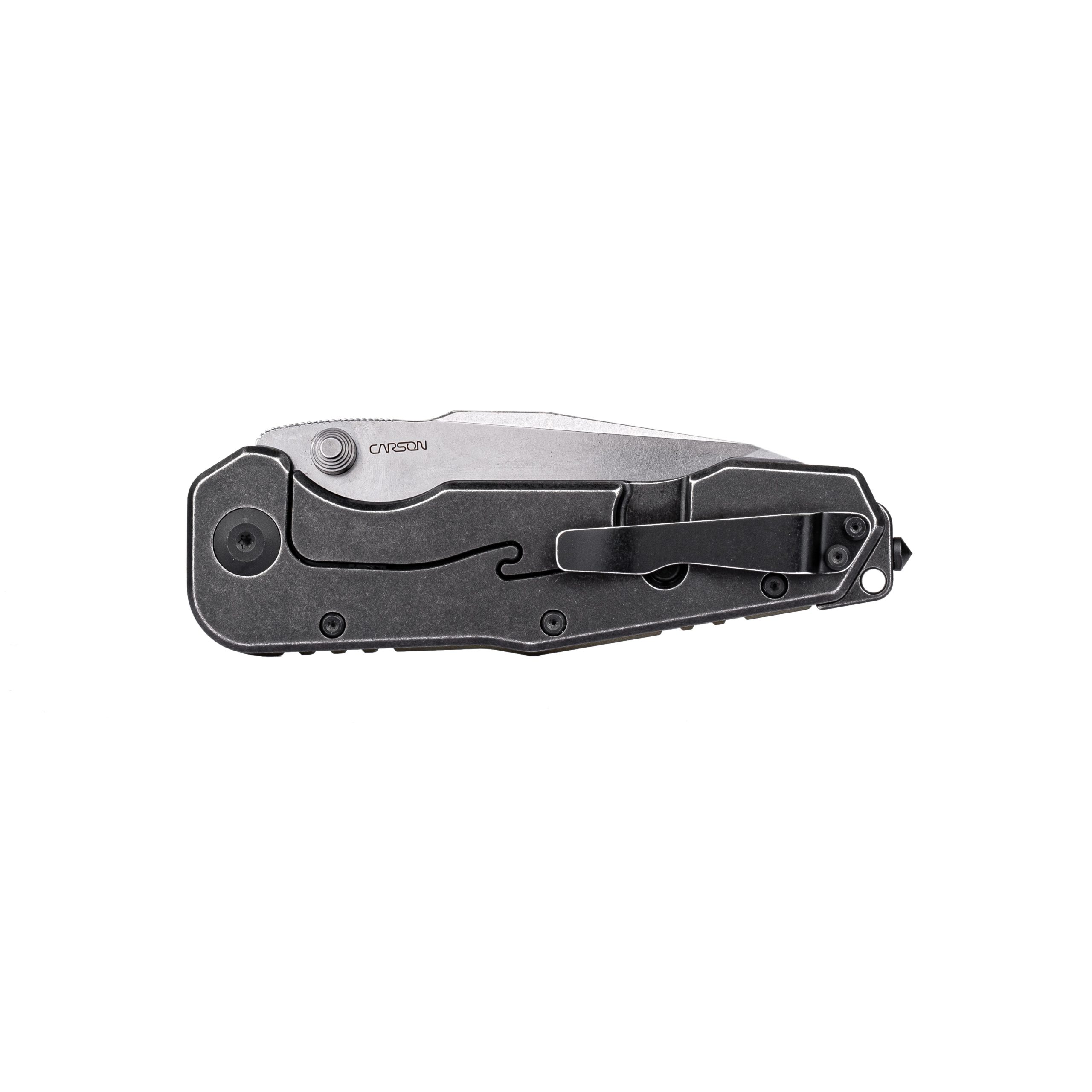 • Backspacer: stalowy z wybijakiem do szyb — zwiększa funkcjonalność noża i posiada otwór na linkę lub paracord.