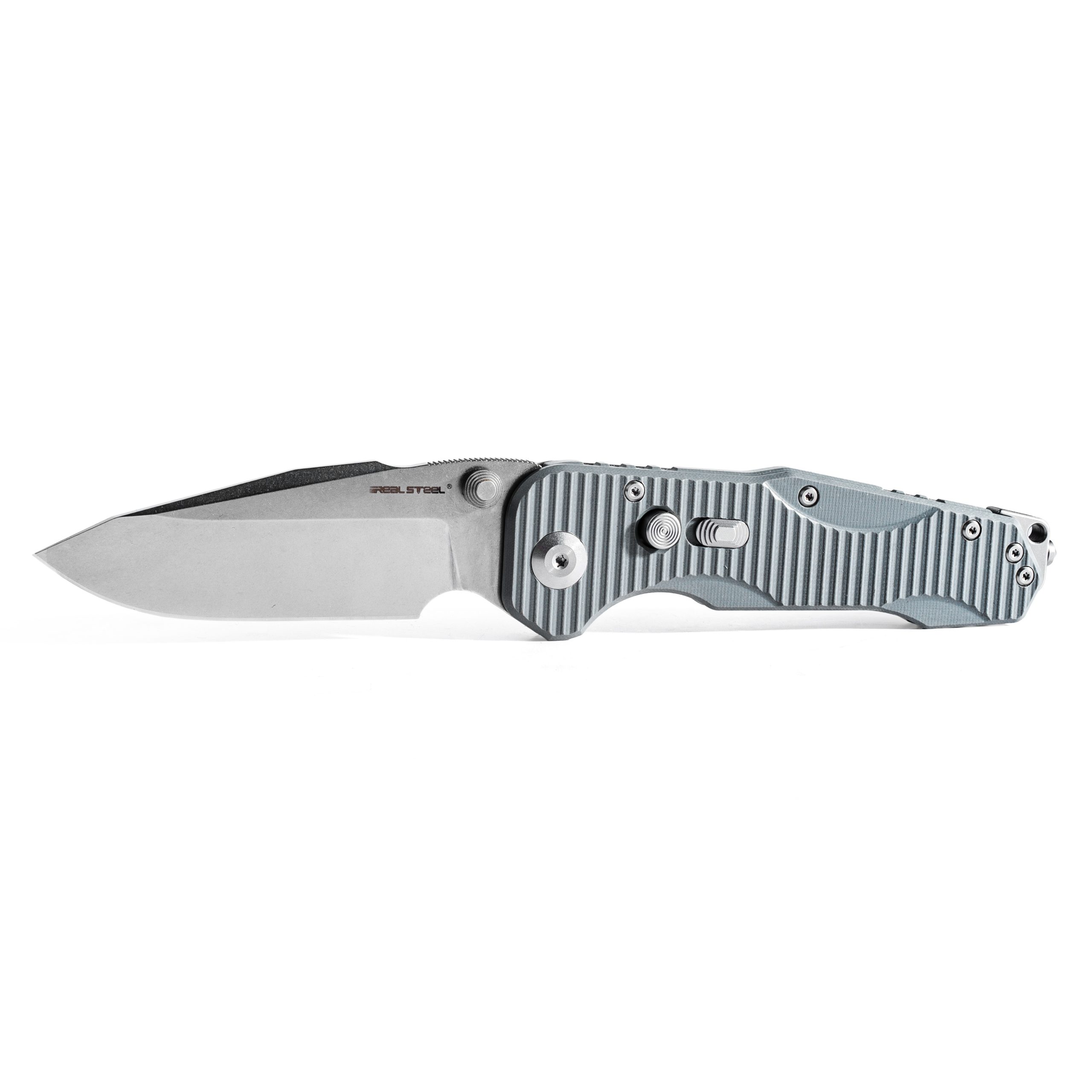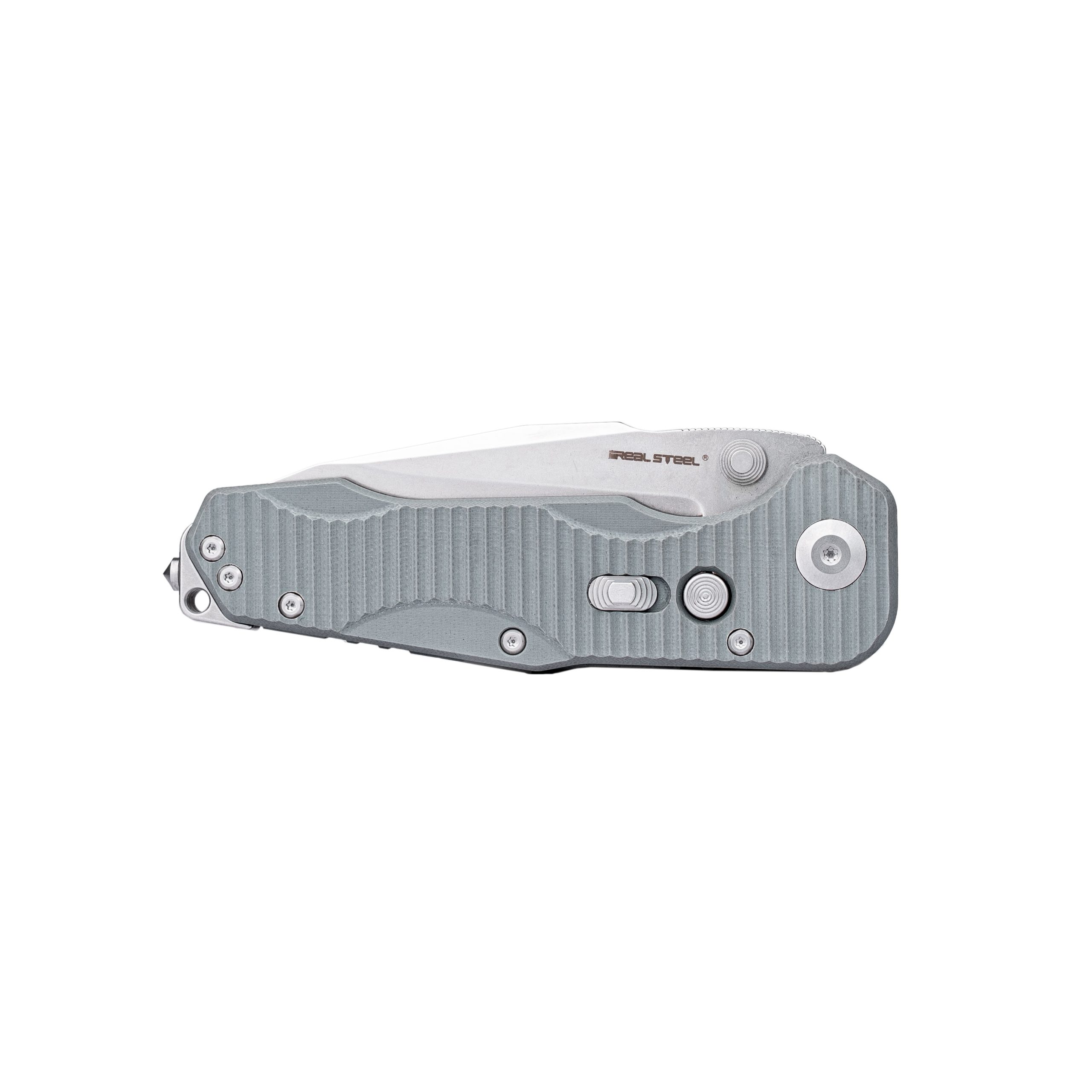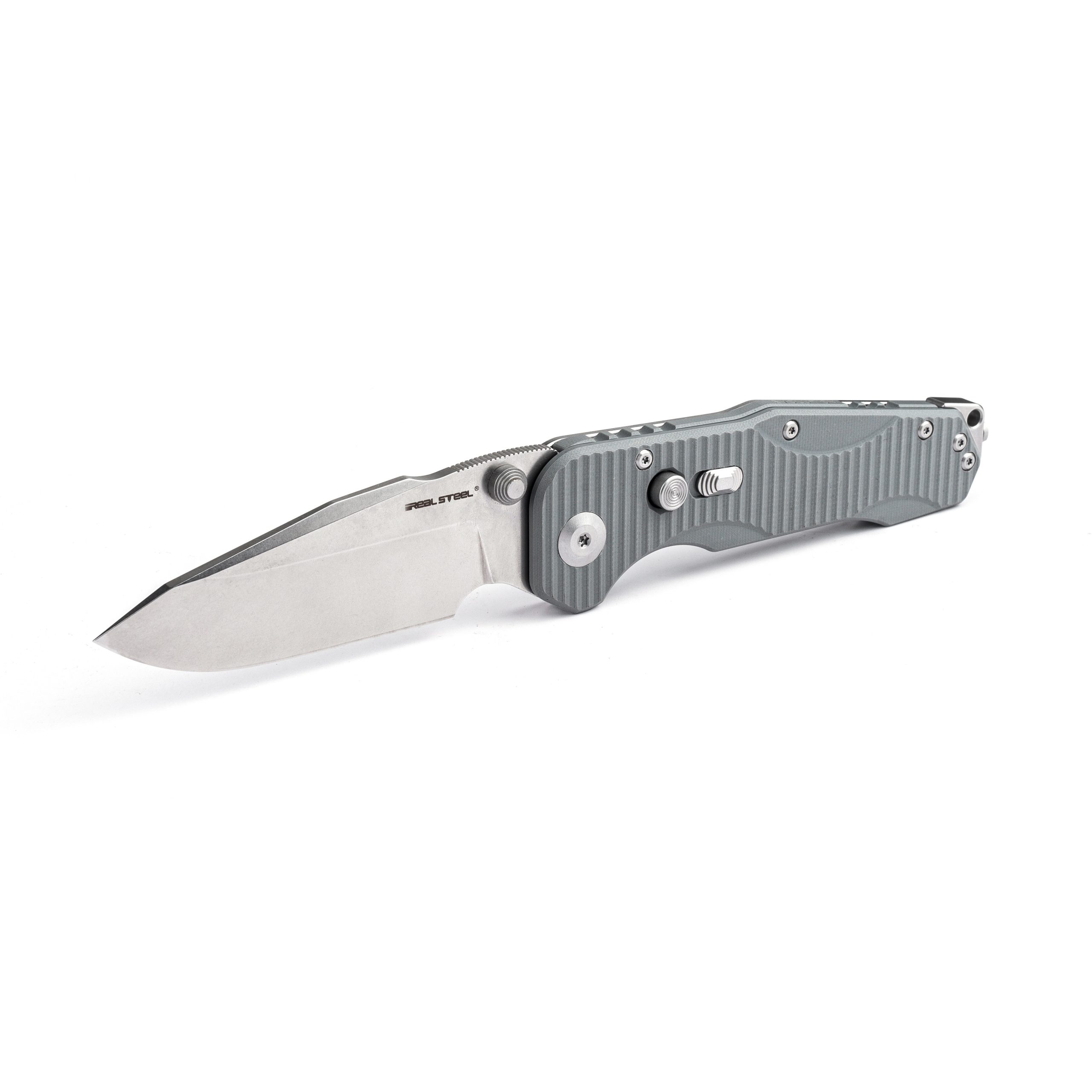 Nóż Składany Real Steel Evolution Ironclad 7911SG Drop Point Thumb Stud Frame Lock Stonewashed D2 Steel & Grey G10