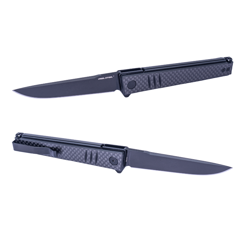 Nóż Składany Real Steel Kikashi 8071CB Flipper Liner Lock Flipper Black Stonewashed PVD 14C28N Black G10 & Carbon Fiber