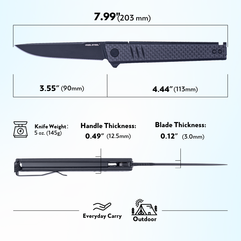 Real Steel Knives to marka znana z nowoczesnych projektów, precyzyjnego wykonania i bardzo dobrego stosunku jakości do ceny. Firma tworzy noże EDC, outdoorowe itd. stawiając na funkcjonalne rozwiązania, lekkie konstrukcje i sprawdzone materiały. Real Steel współpracuje z uznanymi projektantami, w tym z wieloma z Polski i od lat dostarcza modele cenione zarówno przez początkujących użytkowników, jak i bardziej wymagających entuzjastów noży.