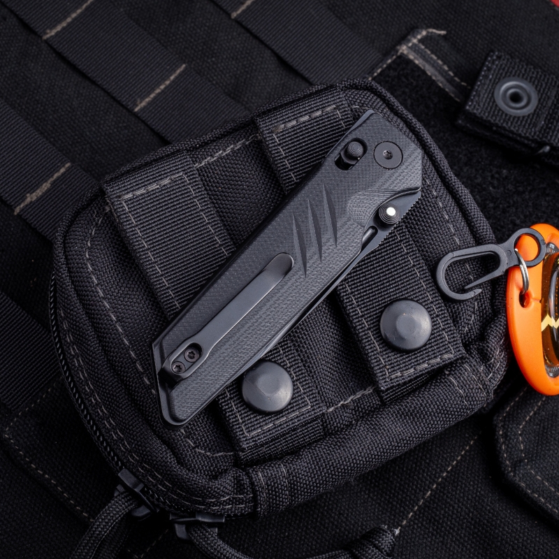 – deep carry — głębokie osadzenie noża w kieszeni; w tym modelu wystaje jedynie ok. 5 mm, dając efekt „ukrytego noszenia”,
