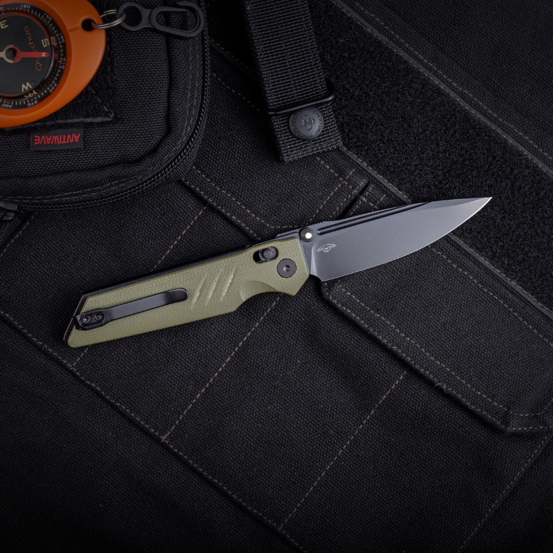 • Otwieranie: obustronny kołek z punktem GITD (Glow in the Dark) — wygodne otwieranie zarówno prawą, jak i lewą ręką; świecący w ciemności punkt ułatwia obsługę przy słabym oświetleniu.