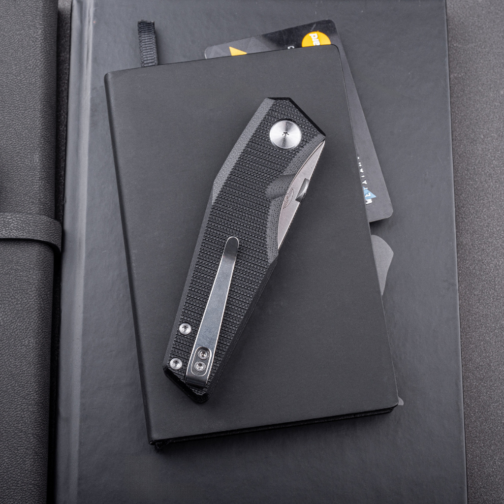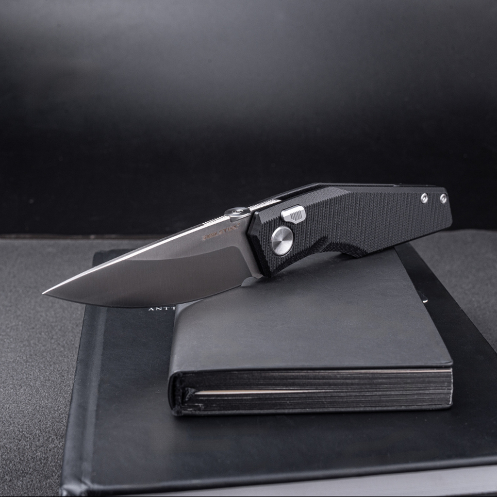 • Rękojeść z G10: Okładziny wykonano z laminatu G10, materiału cenionego za wysoką odporność na uszkodzenia, wilgoć i zmiany temperatury. Teksturowana powierzchnia działa antypnoślizgowo i zapewnia pewny i stabilny chwyt.