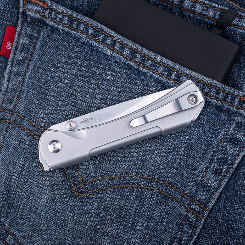 Nóż Składany Real Steel Sylph 7141 Liner Lock Thumb Stud Satin Nitro-V Double Folded Steel Handle Silver Grey by Poltergeist Works