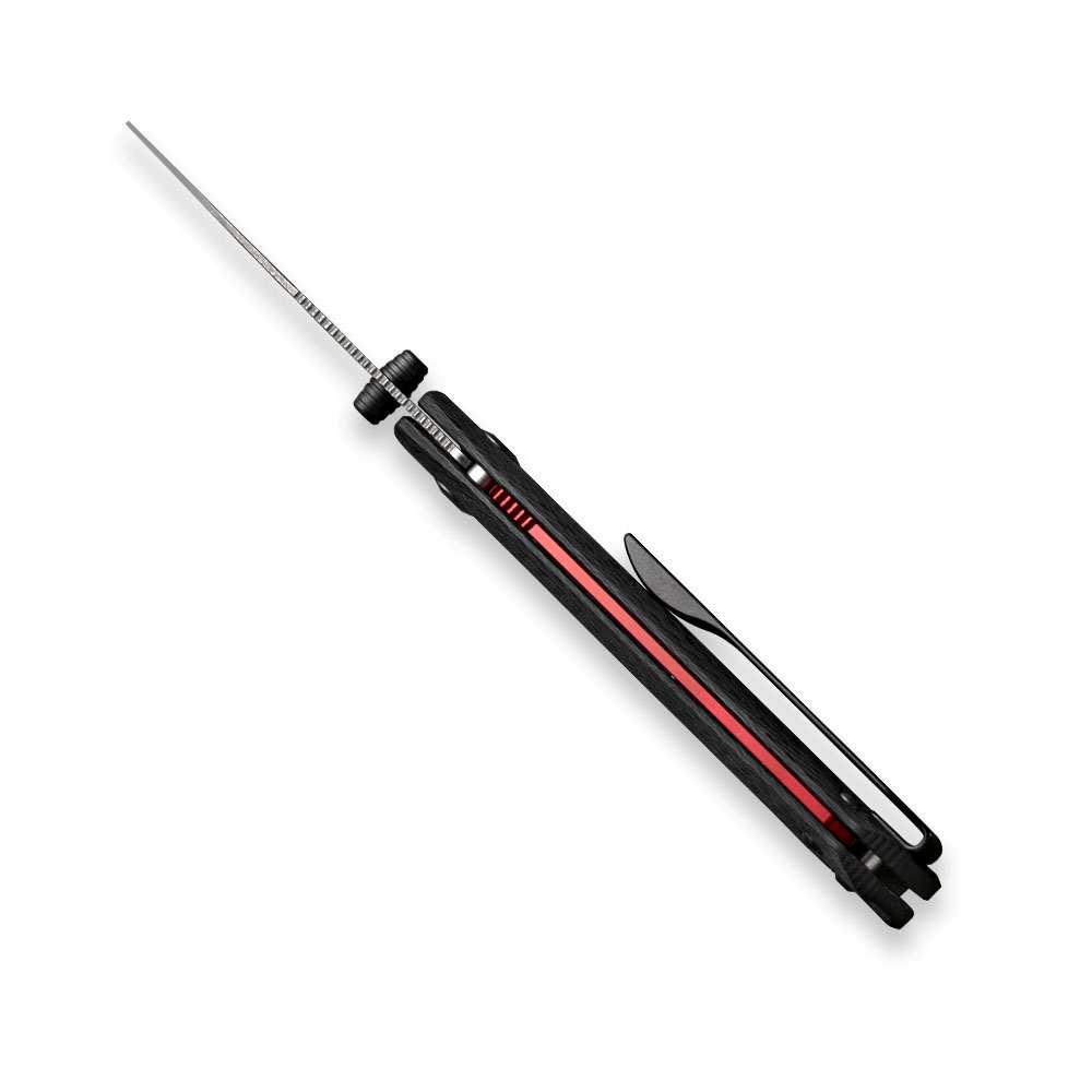 Nóż zaopatrzono w tytanowy klips mocujący typu deep carry umożliwiający dyskretne przenoszenie w kieszeni. Klips posiada możliwość montażu po obu stronach rękojeści, co ułatwia obsługę noża osobom prawo- i leworęcznym. Jest to klips typu tip-up, zlokalizowany na zakończeniu rękojeści noża.