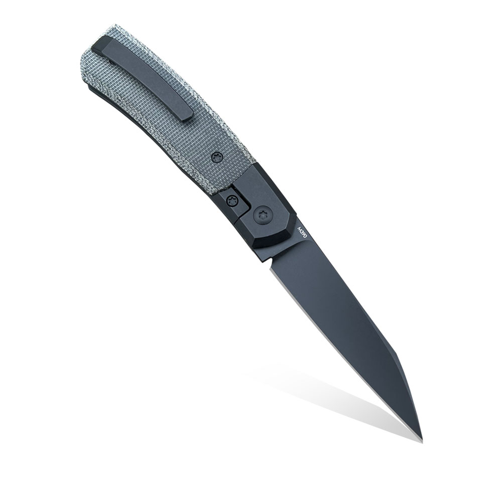 Nóż składany Suprlativ Knives Canibl PVD All Black posiada głownię z pokrytej czarną tytanową powłoką PVD stali premium M390. Korpus noża wykonano z tytanu i przytwierdzono do niego z okładziny z czarnej micarty. Otwieranie ostrza następuję za sprawą górnej płetwy (front flipper), natomiast blokowanie zapewnia frame lock. Do przenoszenia noża służy tytanowy klips mocujący.