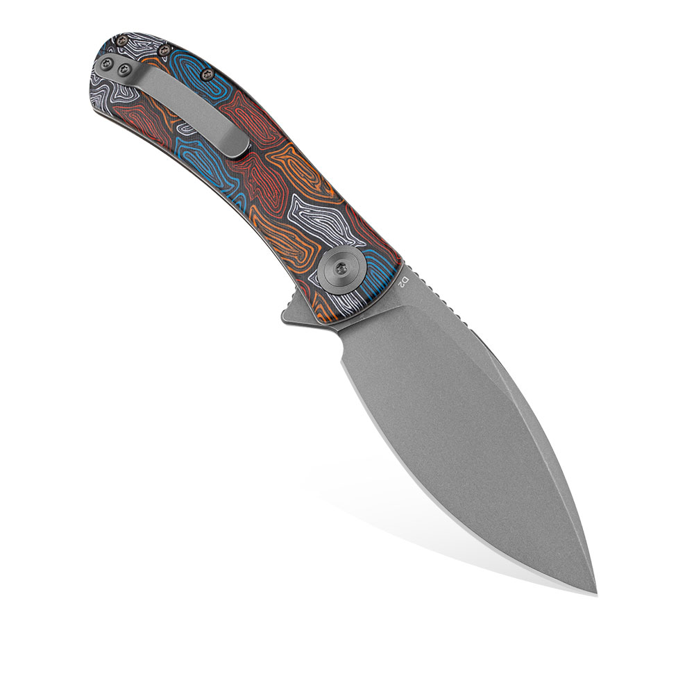 - Rękojeść: stalowe linersy i backspacer, okładki z kolorowego G10, stalowy klips (Tip-Up)
