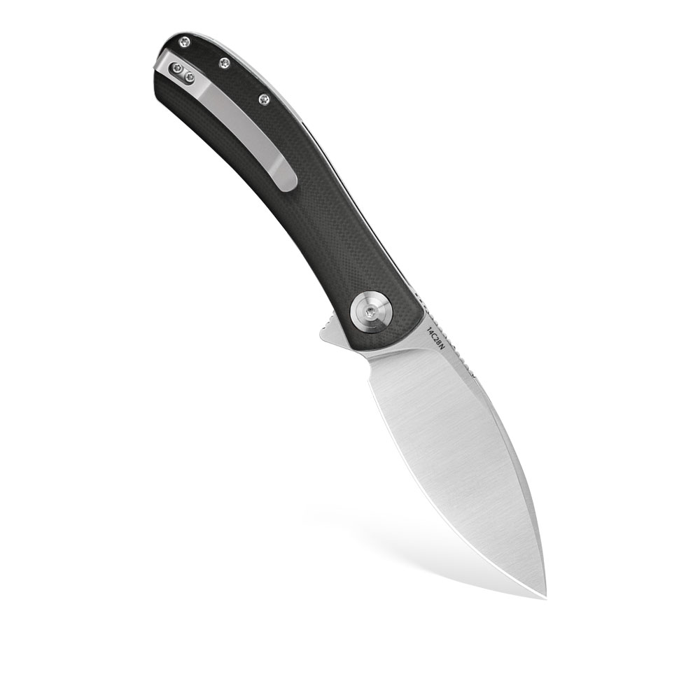 **OSTRZE ZE STALI NIERDZEWNEJ**: 14C28N to szwedzka stal nierdzewna opracowana przez firmę Sandvik specjalnie do produkcji noży. Oferuje doskonały balans między utrzymywaniem ostrości, odpornością na korozję i łatwością ostrzenia, dzięki czemu świetnie sprawdza się w nożach EDC, outdoorowych oraz kuchennych. Dodatek azotu zwiększa twardość i poprawia ogólną wydajność stali. W porównaniu do D2, 14C28N jest bardziej odporna na korozję i łatwiejsza w ostrzeniu, natomiast D2 zazwyczaj nieco dłużej trzyma ostrość, ale jest znacznie bardziej podatna na rdzę.