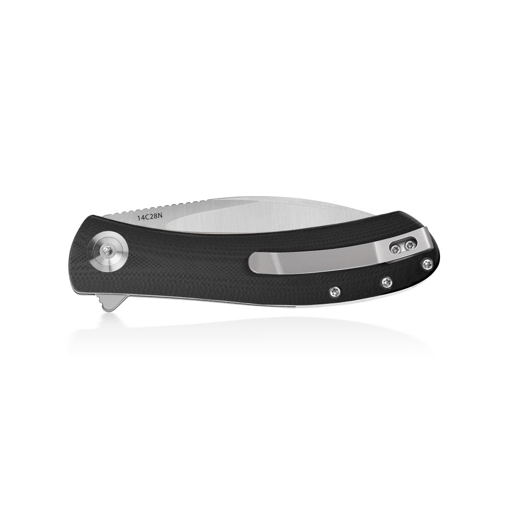 - Rękojeść: Okładki z czarnego G10 (black G10), stalowe linersy i backspacer, stalowy klips typu Deep Carry / Tip-Up