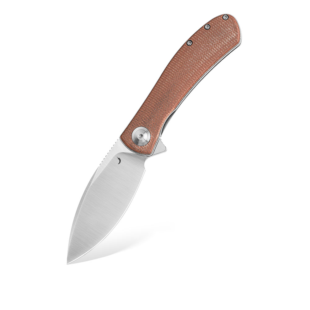 - Rękojeść: Okładki z brązowej micarty (brown micarta), stalowe linersy i backspacer, stalowy klips typu Deep Carry / Tip-Up