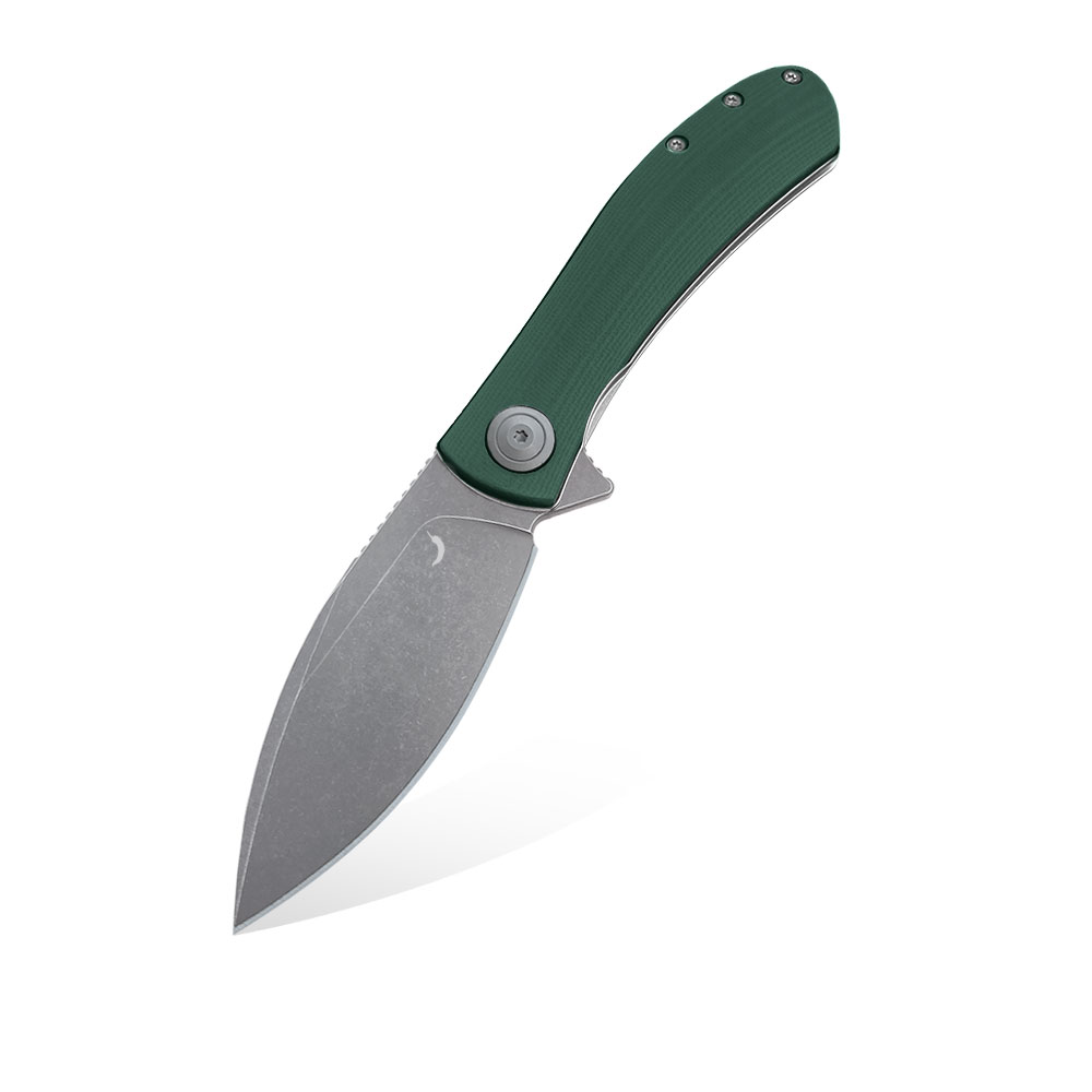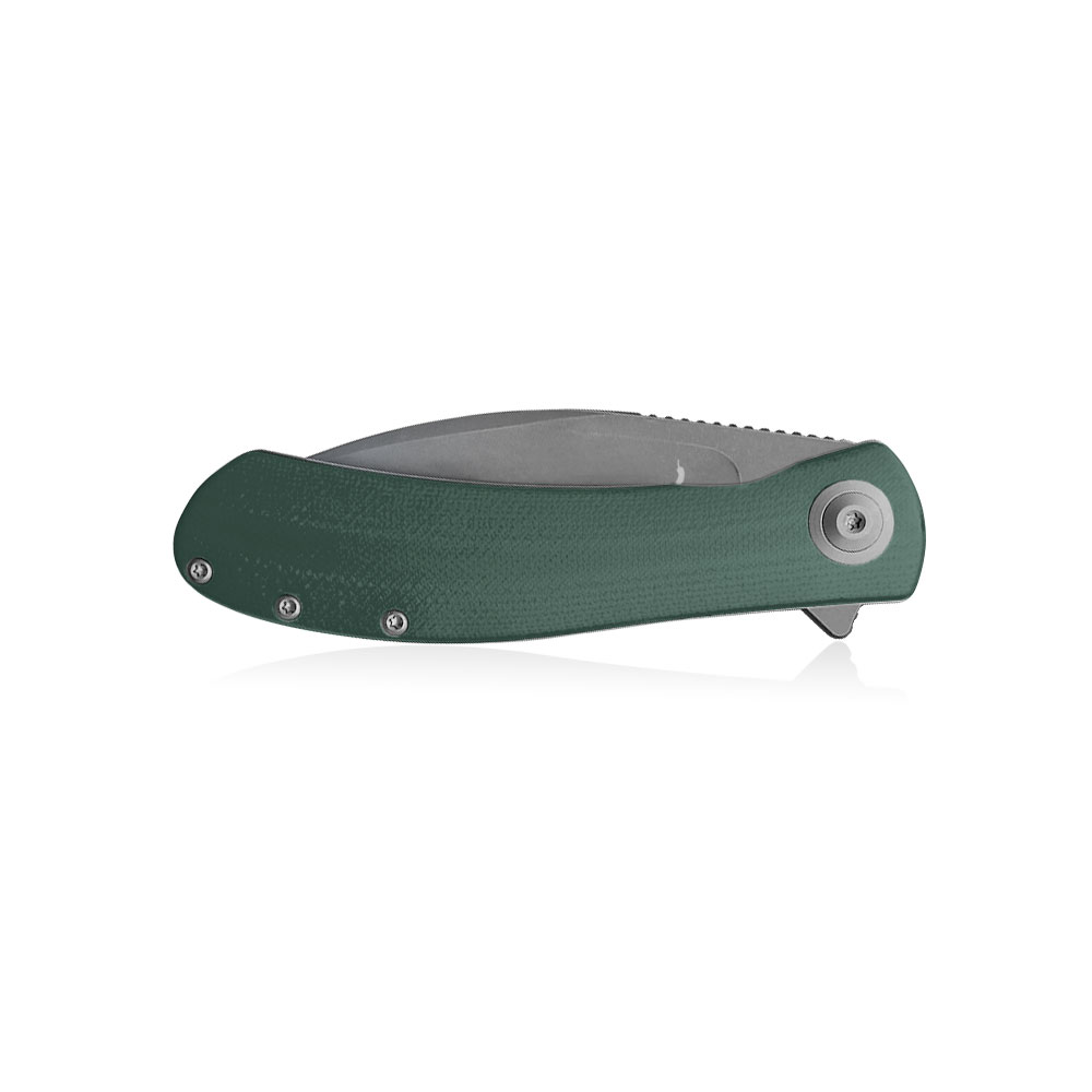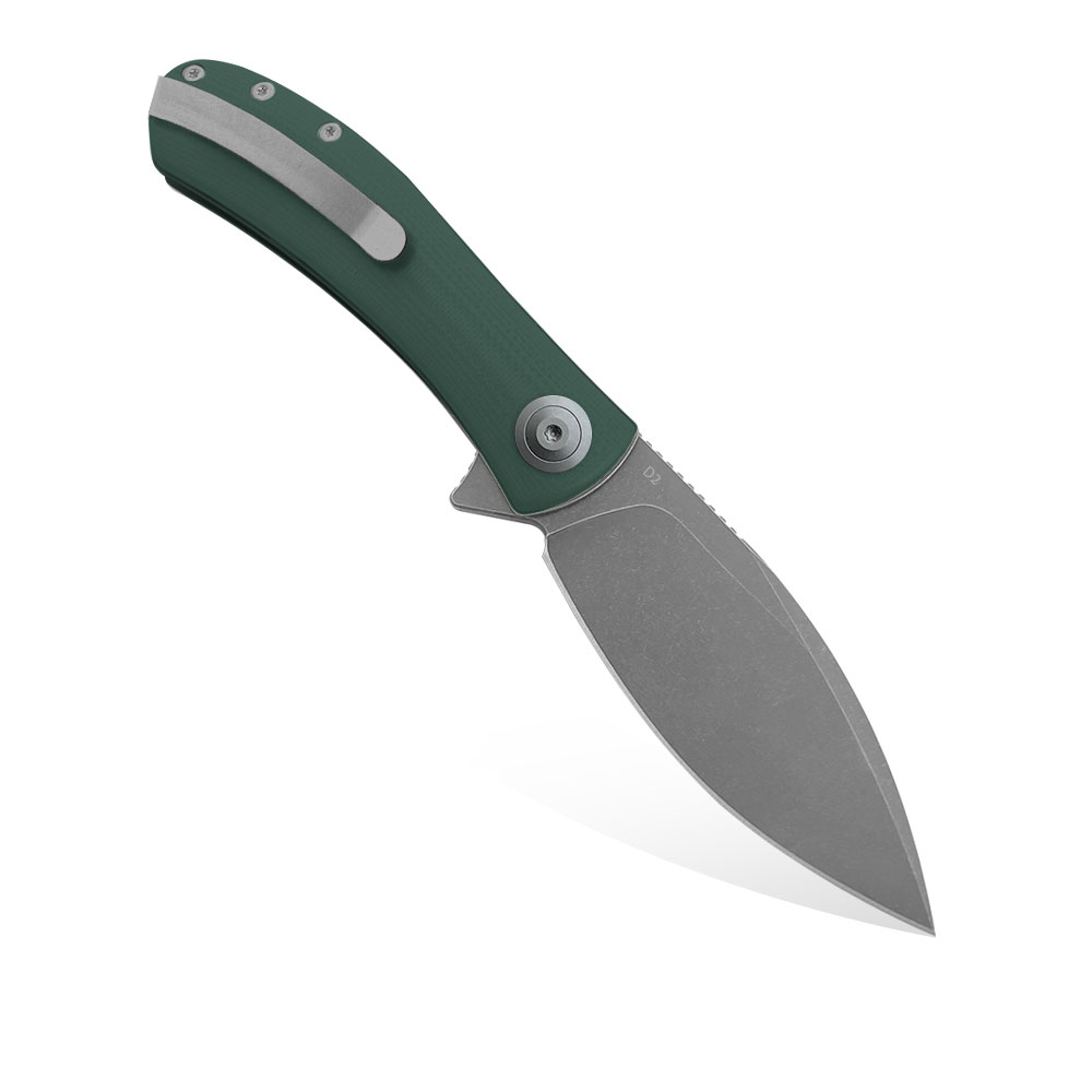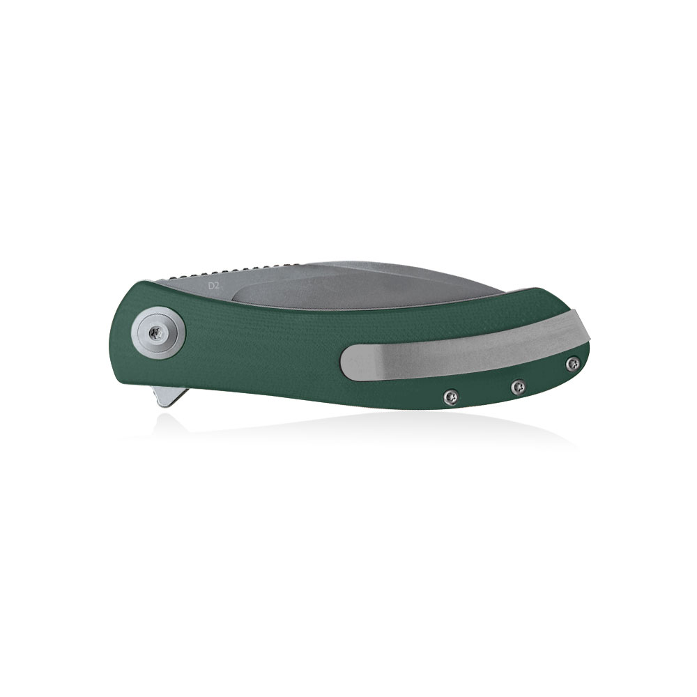 - Rękojeść: stalowe linersy i backspacer, okładki z zielonego G10 (green G10), stalowy klips typu Deep Carry / Tip-Up