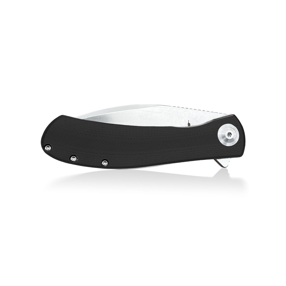 - Ostrze: składane (folding knife), profil drop point ze szlifem płaskim, gładka krawędź tnąca