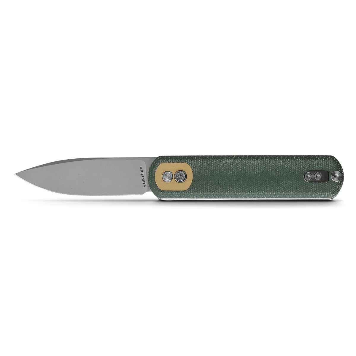 Nóż składany Vosteed Corgi Trek Lock Stonewashed 14C28N Green Micarta CG3SVM3