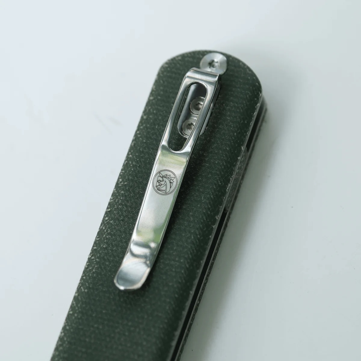 Klips mocujący umiejscowiony w tylnej części rękojeści zapewnia stabilne przenoszenie w kieszeni, zamocowanie w plecaku, sakwie, nerce itd. Klips wykonano ze stali nierdzewnej i zamontowano go w pozycji tip-up (wierzchołek ostrza skierowany do góry w momencie zaczepienia noża klipsem).