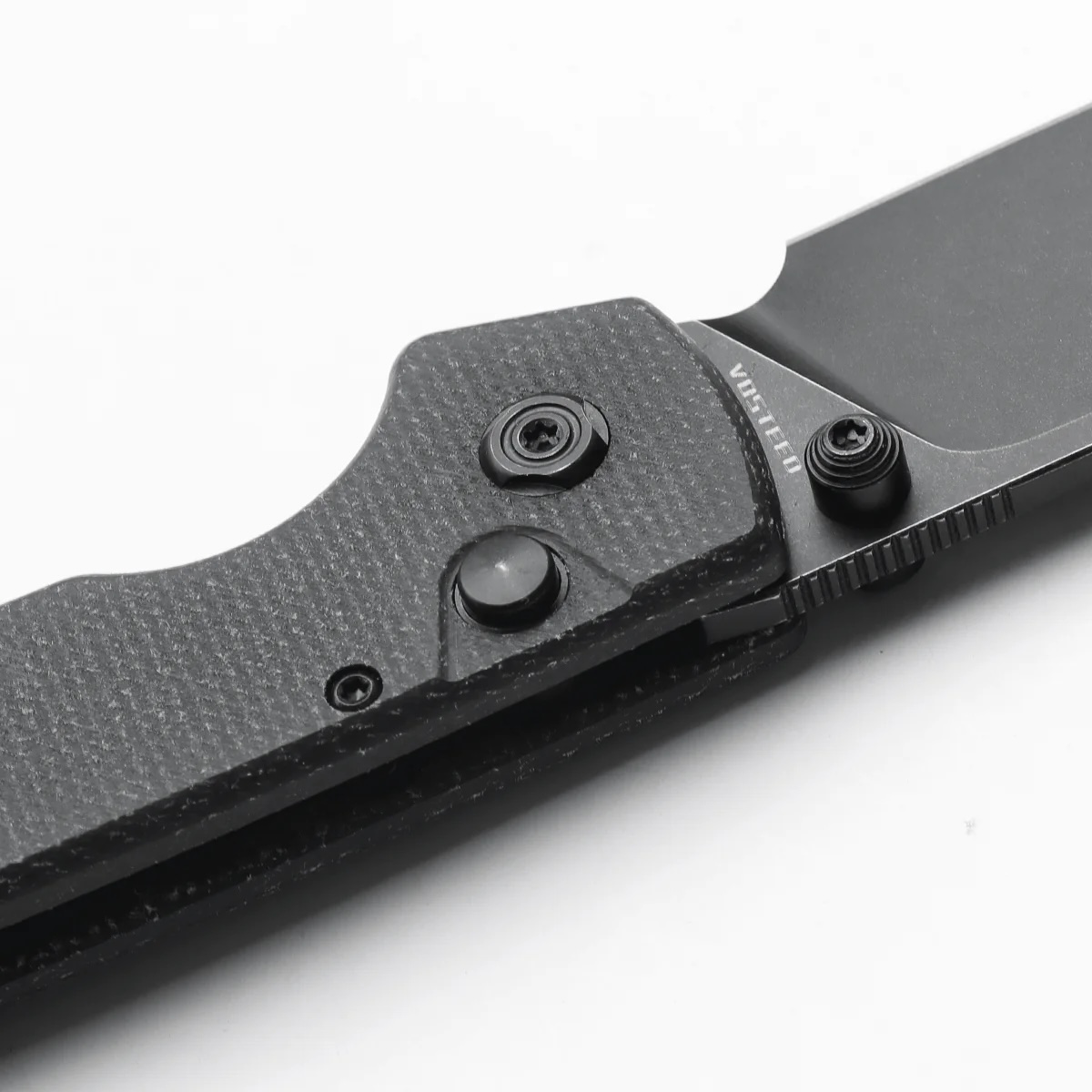 Nóż składany Vosteed Raccoon Button Lock Black 14C28N Black Micarta RC3SVM6