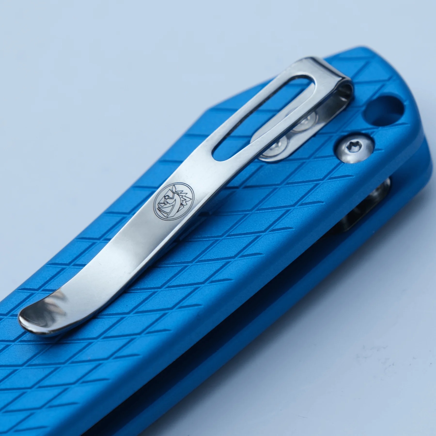 - Rękojeść: korpus z aluminium (blue | niebieski), klips do przenoszenia ze stali nierdzewnej (Tip-Up, reversible | obustronny)